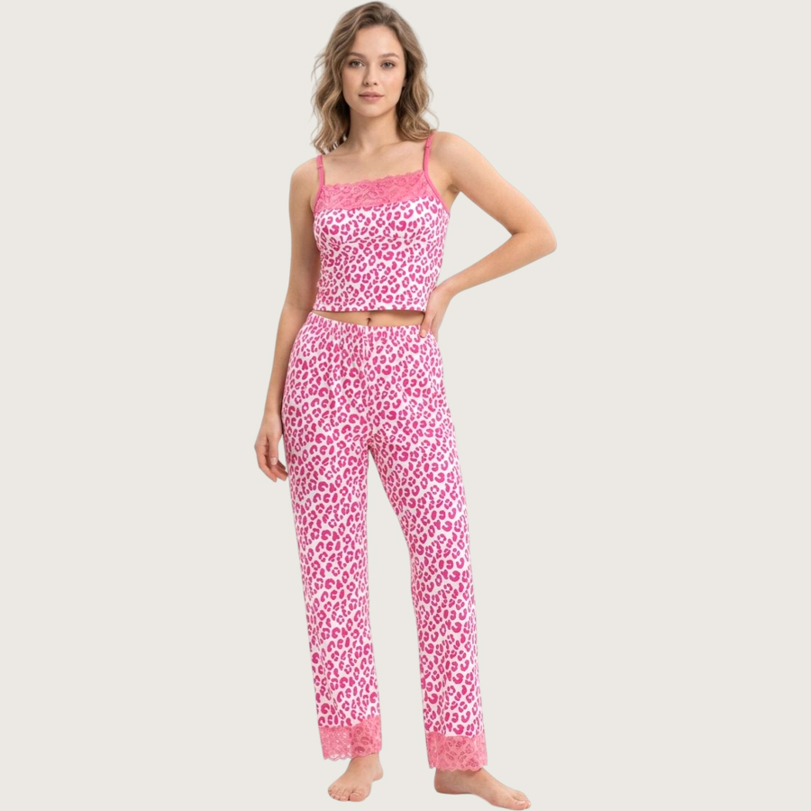 Tiger Print Ladies Halfer Pajama Set – Pink