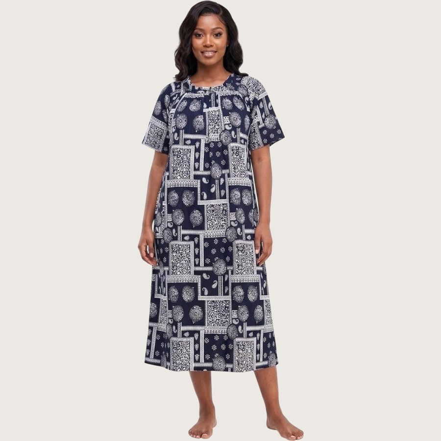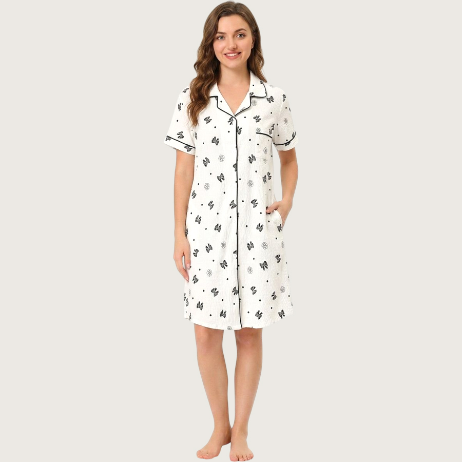 Floral Dots 3 Button Ladies Pajama Set – Dark Cream
