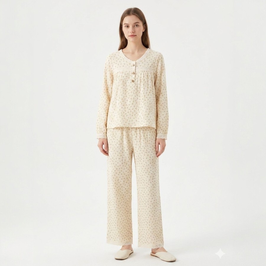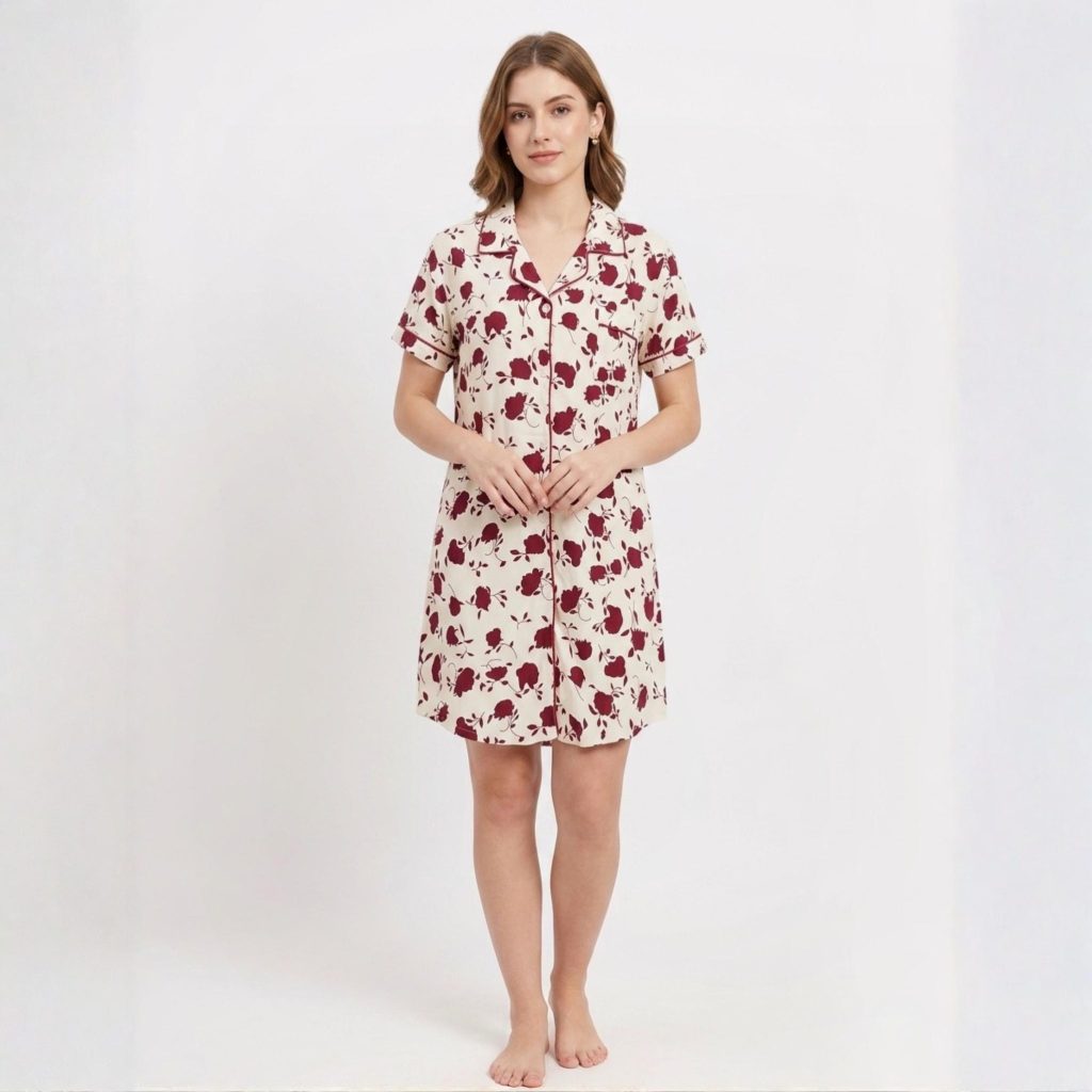 Floral Ladies Long Shirt – Light Cream