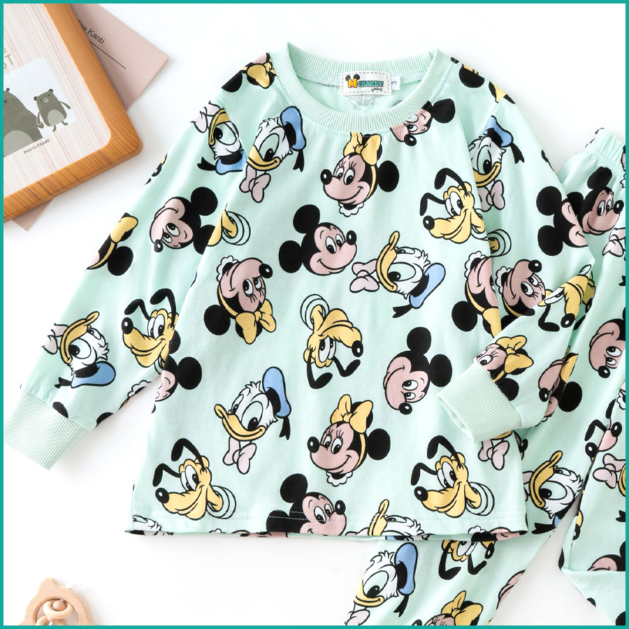All Mickey Girls Full Sleeves Pajama Set – Sea Green