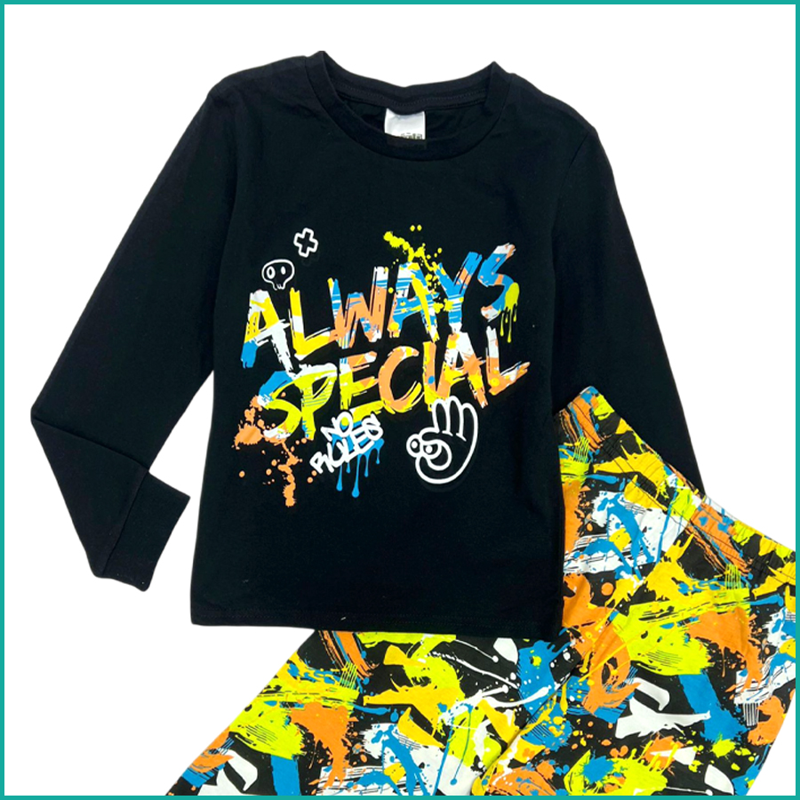 Always Special Boys Cotton Pajama Set – Black