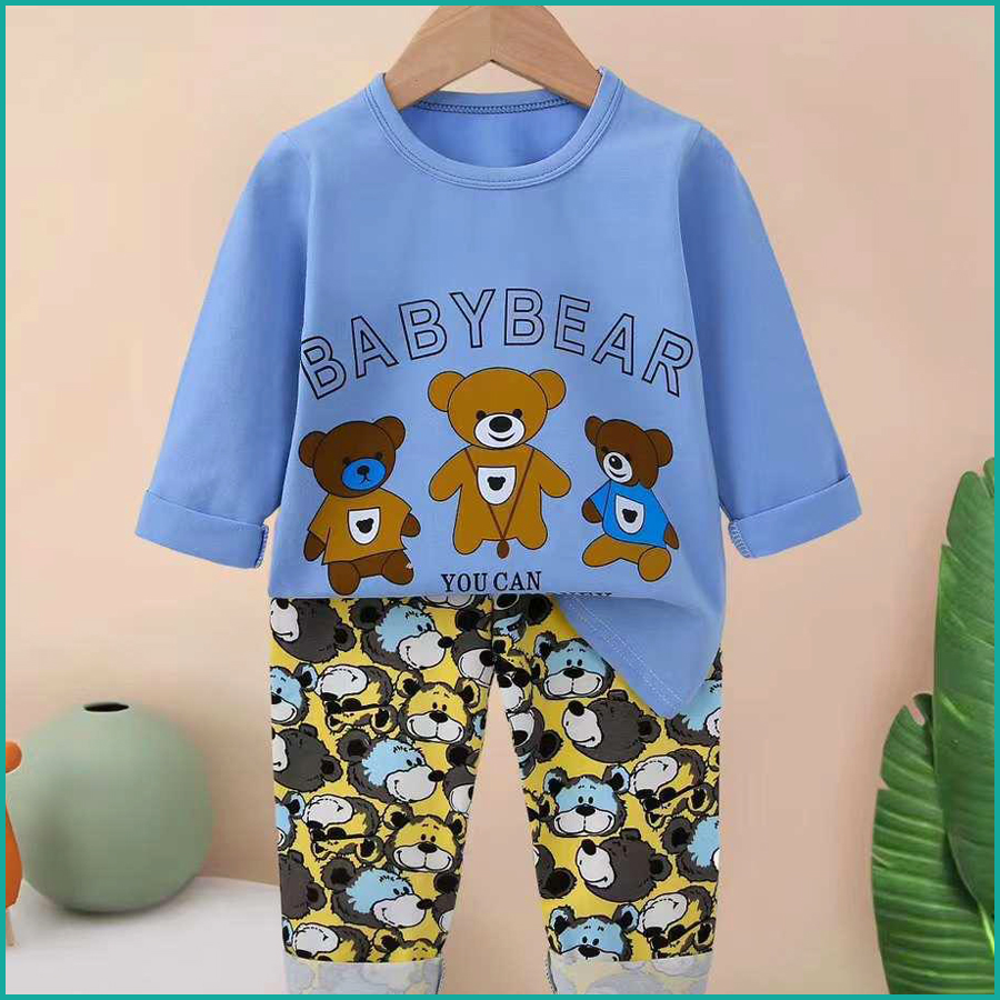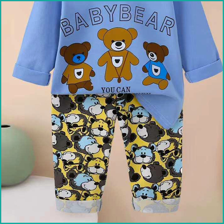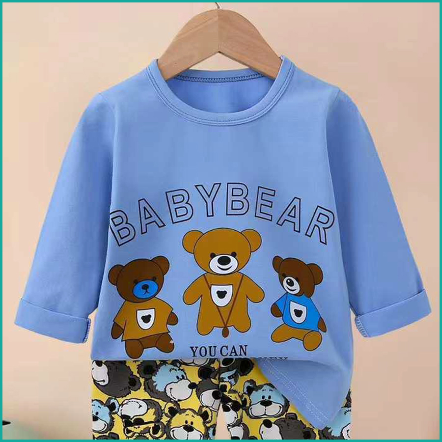Baby Bear Boys Full Sleeves Cotton Pajama Set – Blue