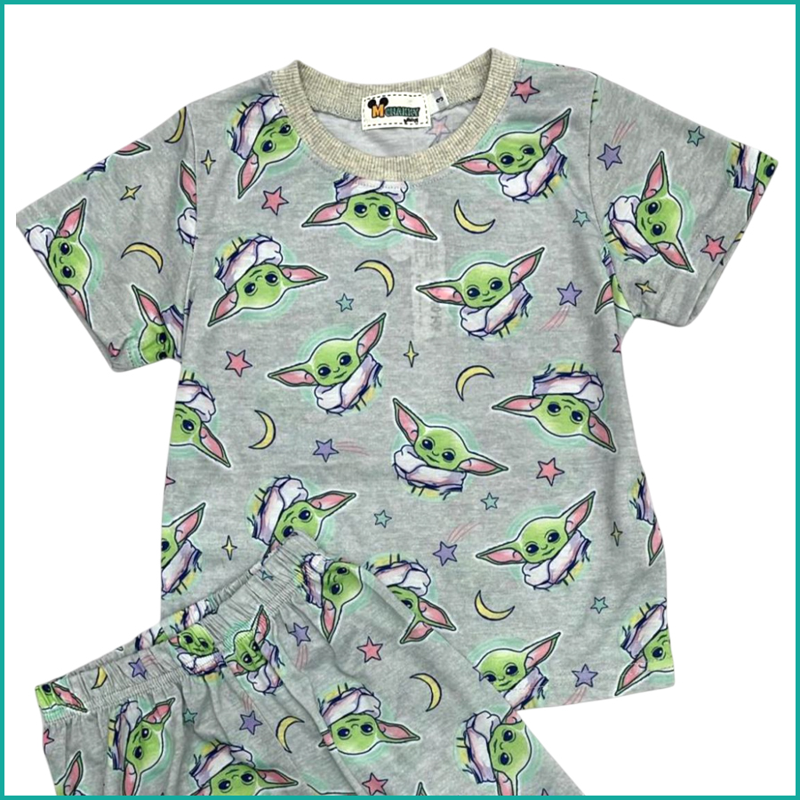 Baby Yoda Girls Half Sleeves Pajama Set – Grey