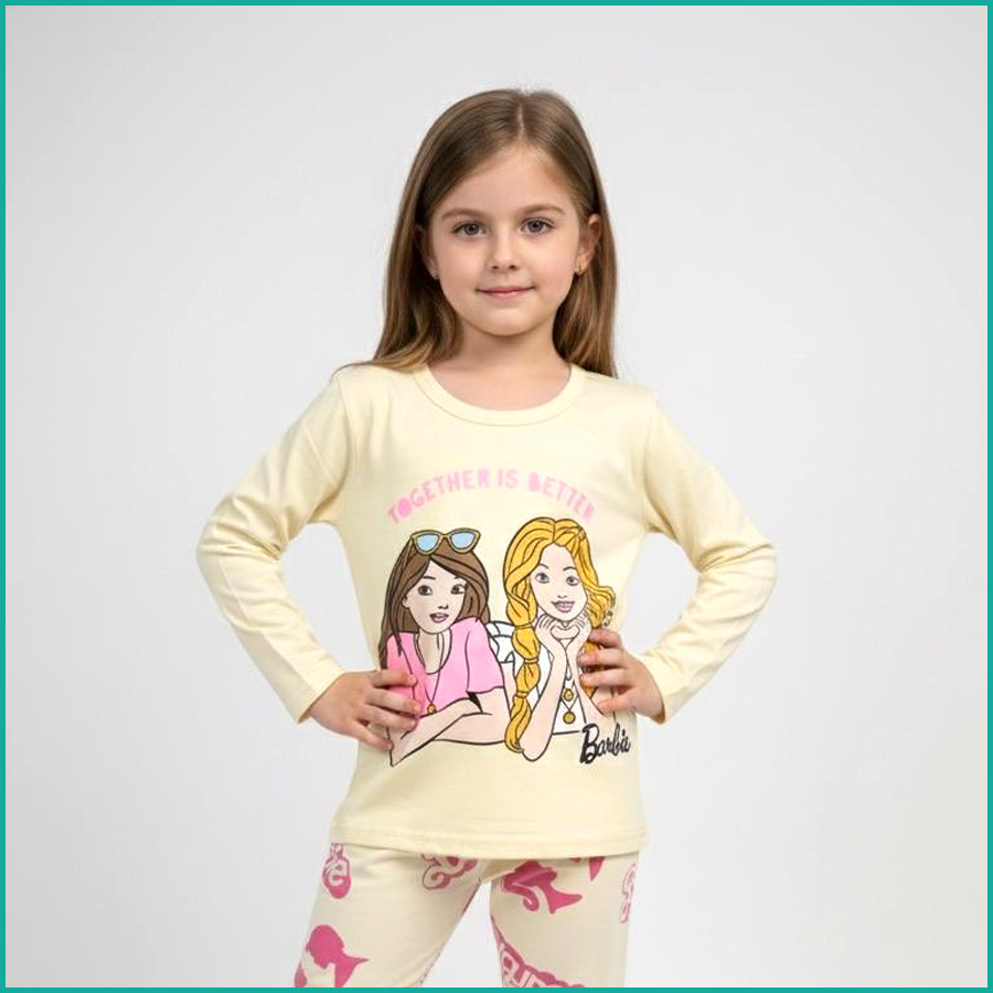 Barbie Together Girls Full Sleeves Pajama Set Khafif – Cream
