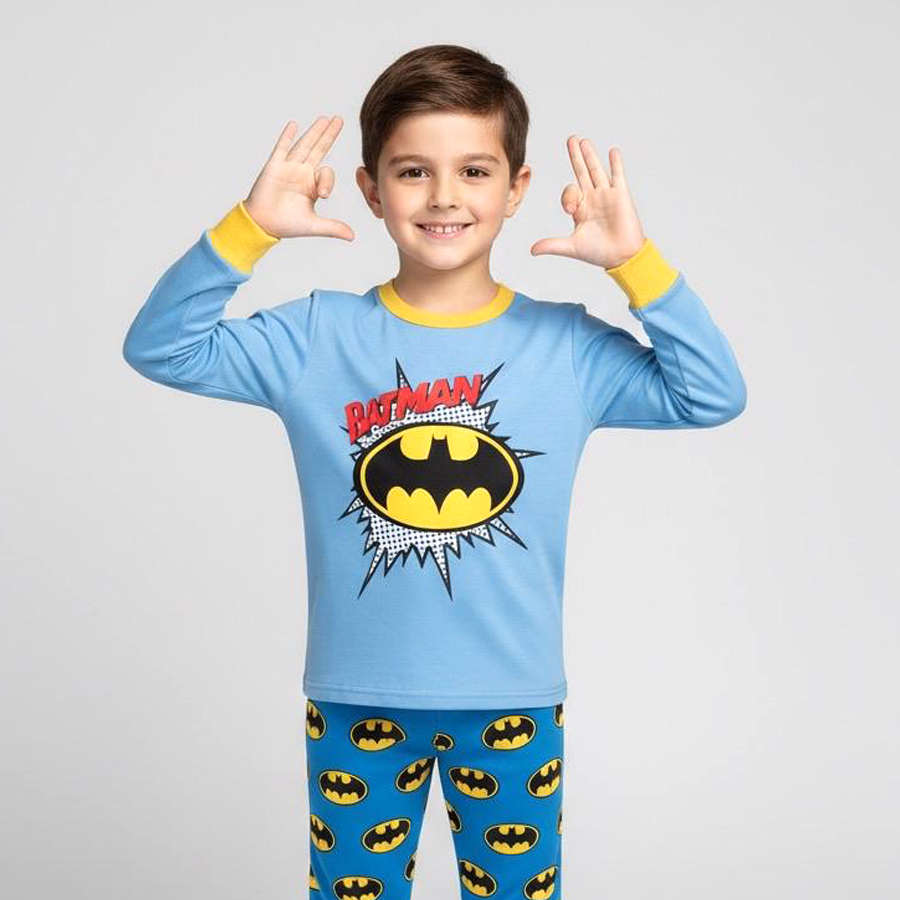 Batman Boys Winter Pajama Set – Sky Blueبجايم مبتن من داخل
