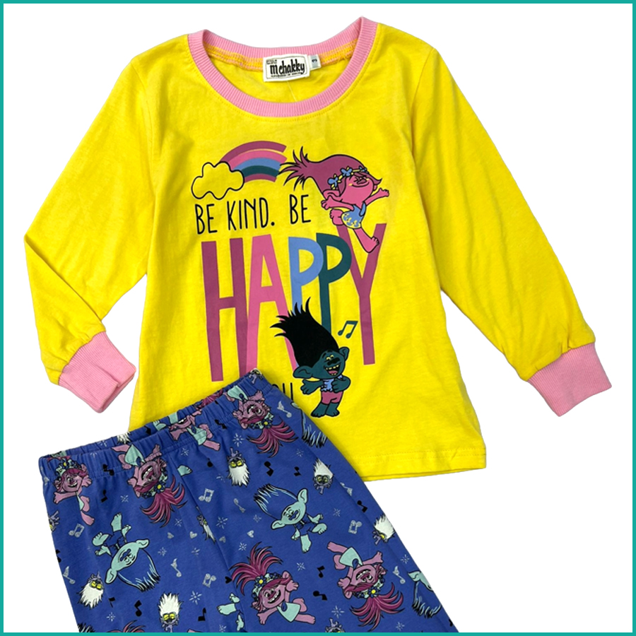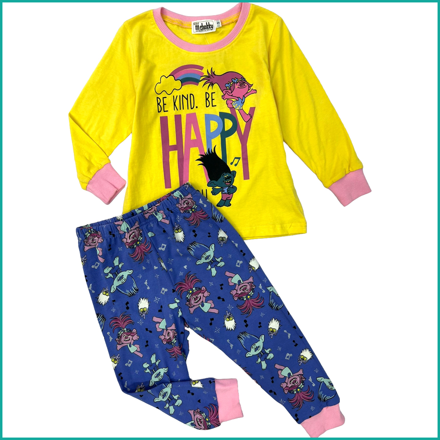 Be Kind Girls Cotton Full Sleeves Pajama Set – Blue Yellow