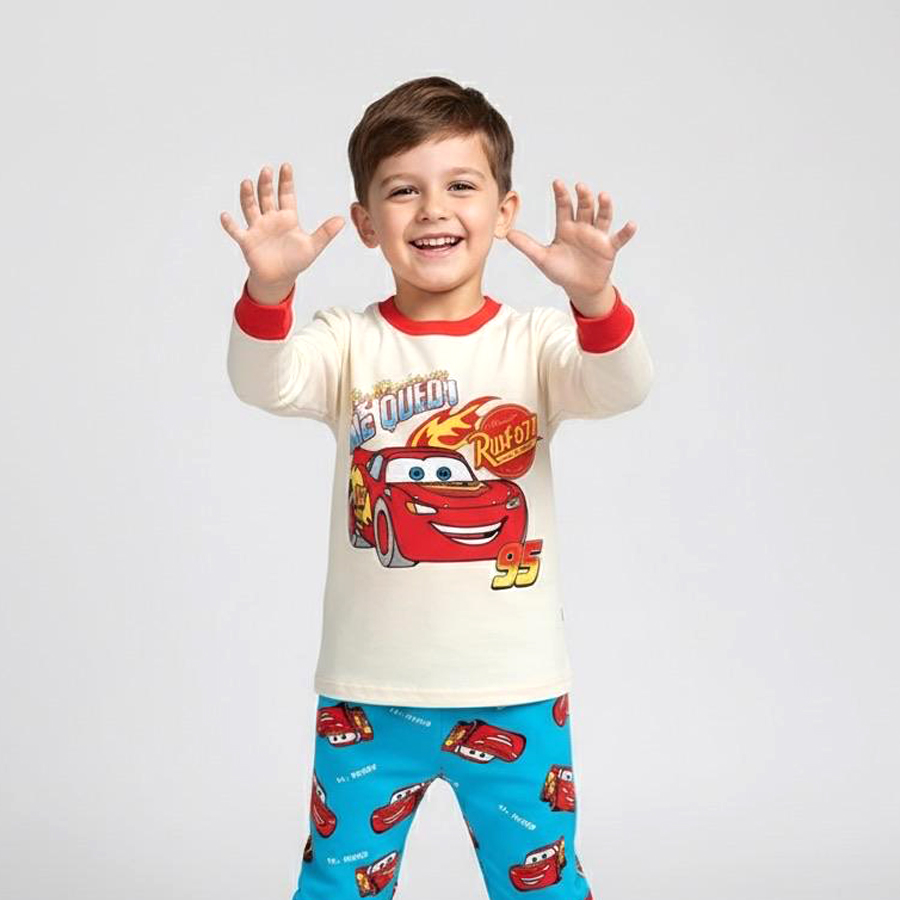 Cars Boys Winter Pajama Set – Cream Blue