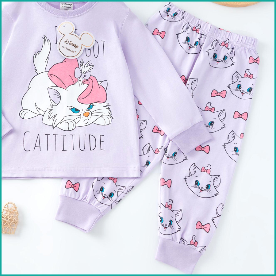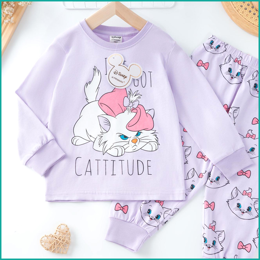 Cattitude Girls Full Sleeves Pajama Set PRIMARK – Purple