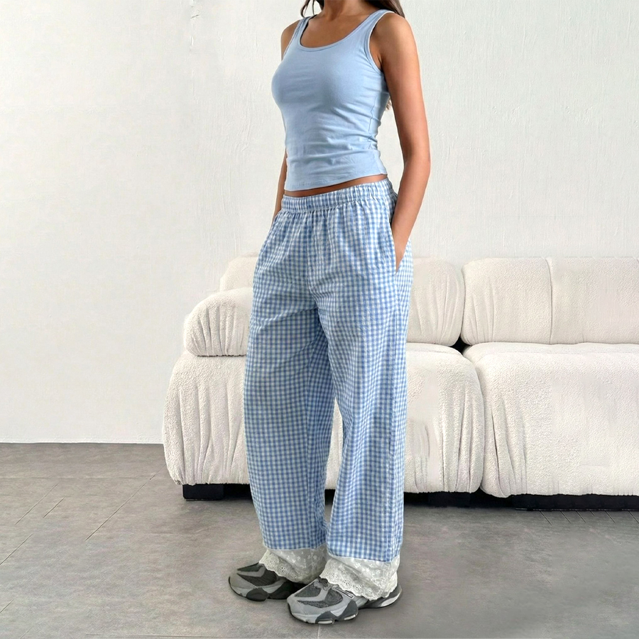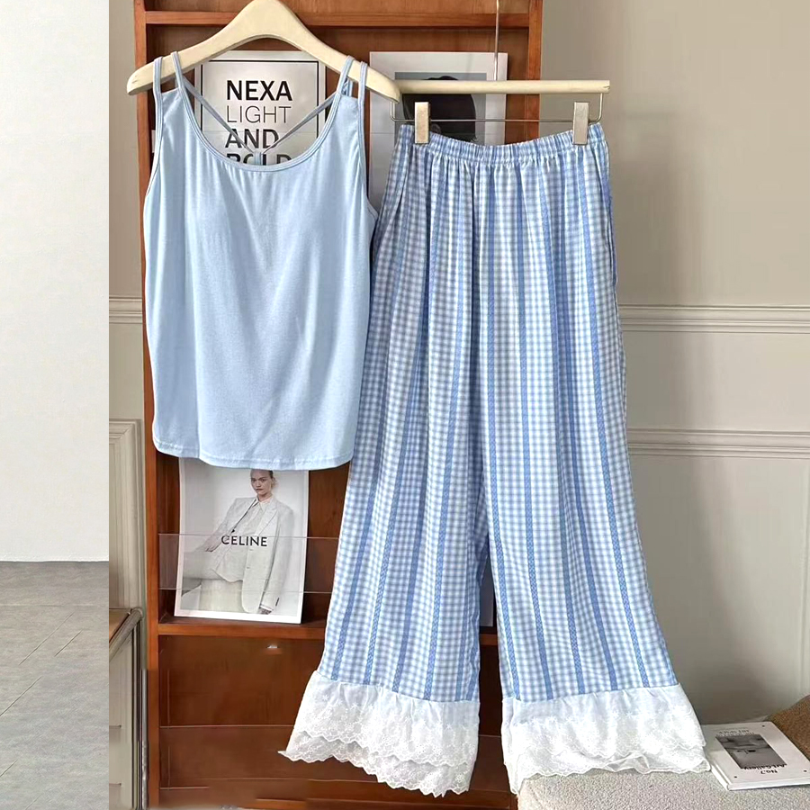 Checks Sleeveless Ladies Pajama Set – Sky Blue