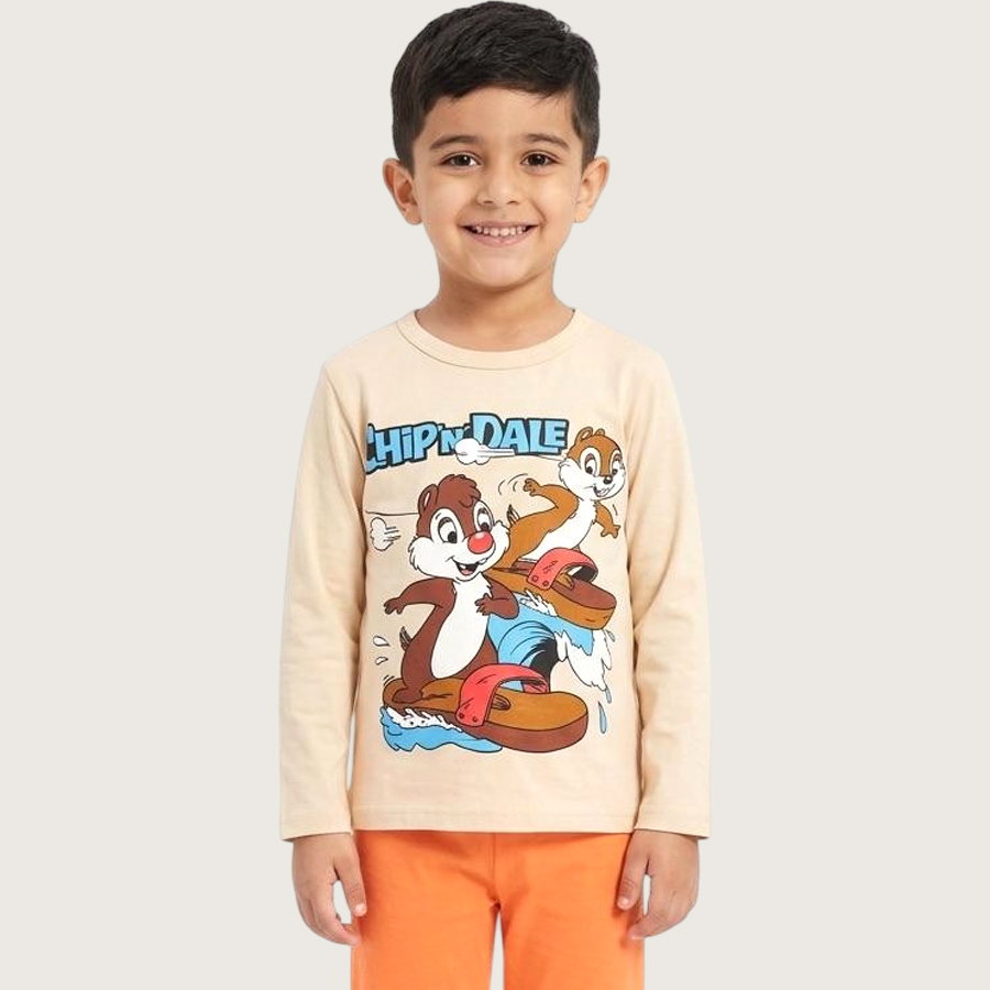 Chip n Dale Boys Cotton Pajama Set – Cream Orange