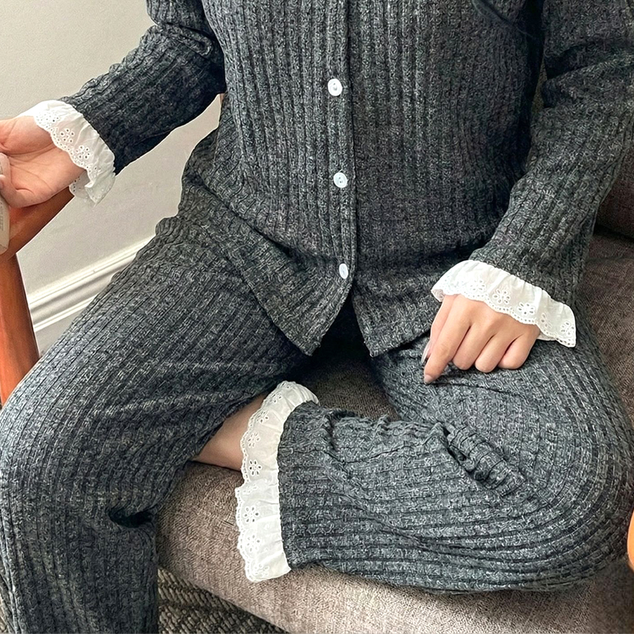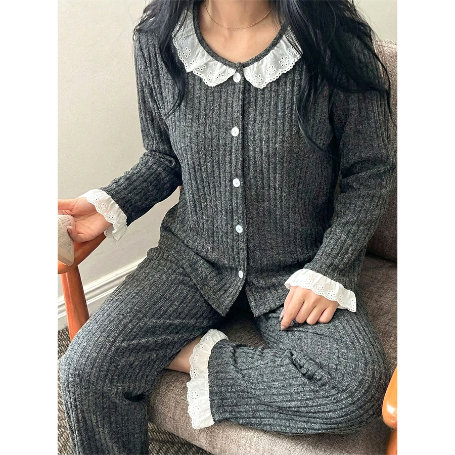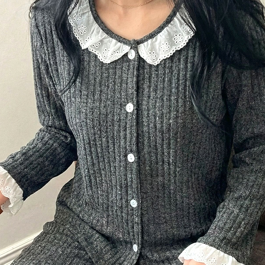 Collar Lace Ladies Pajama Set – Black