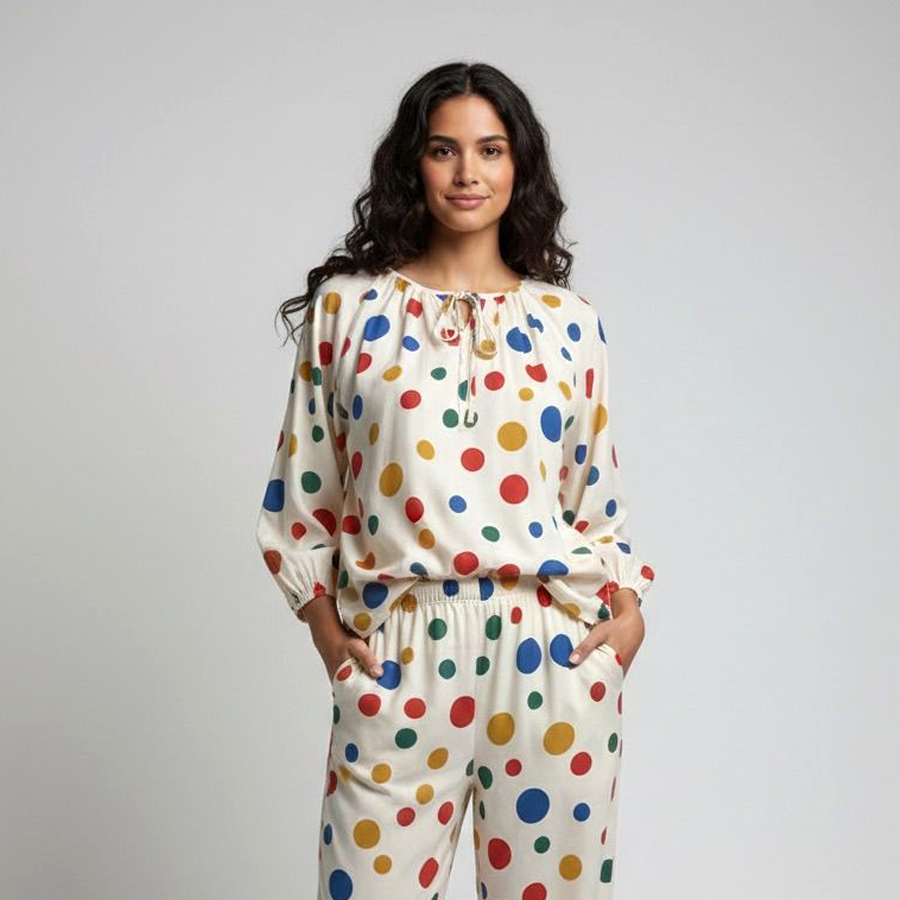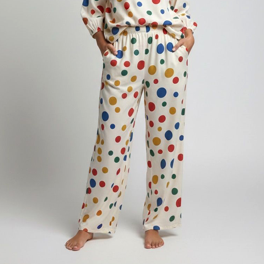 Colorful Dots Ladies Linen Pajama Loungewear – White