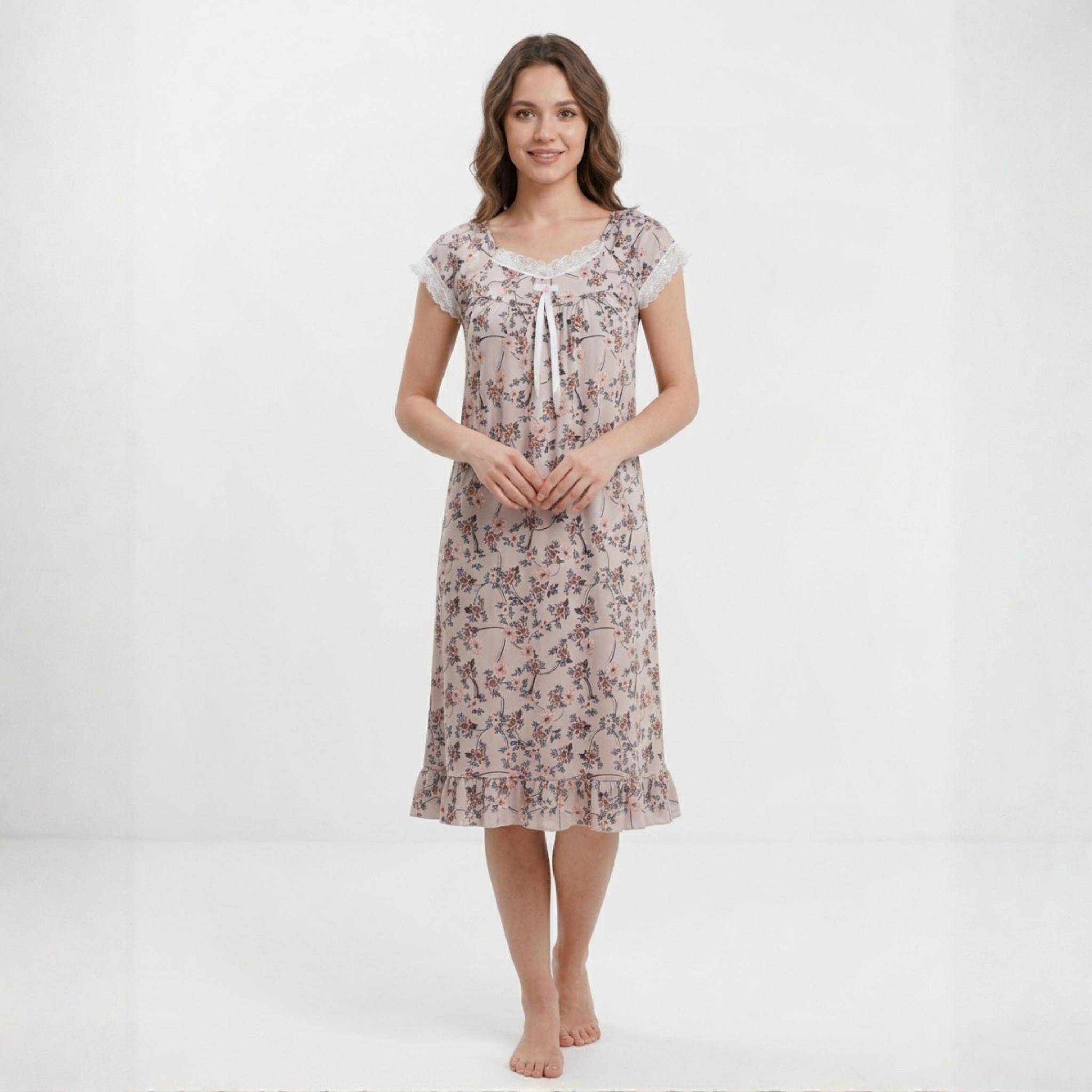 Colorful Flowers Ladies Dress – Cream