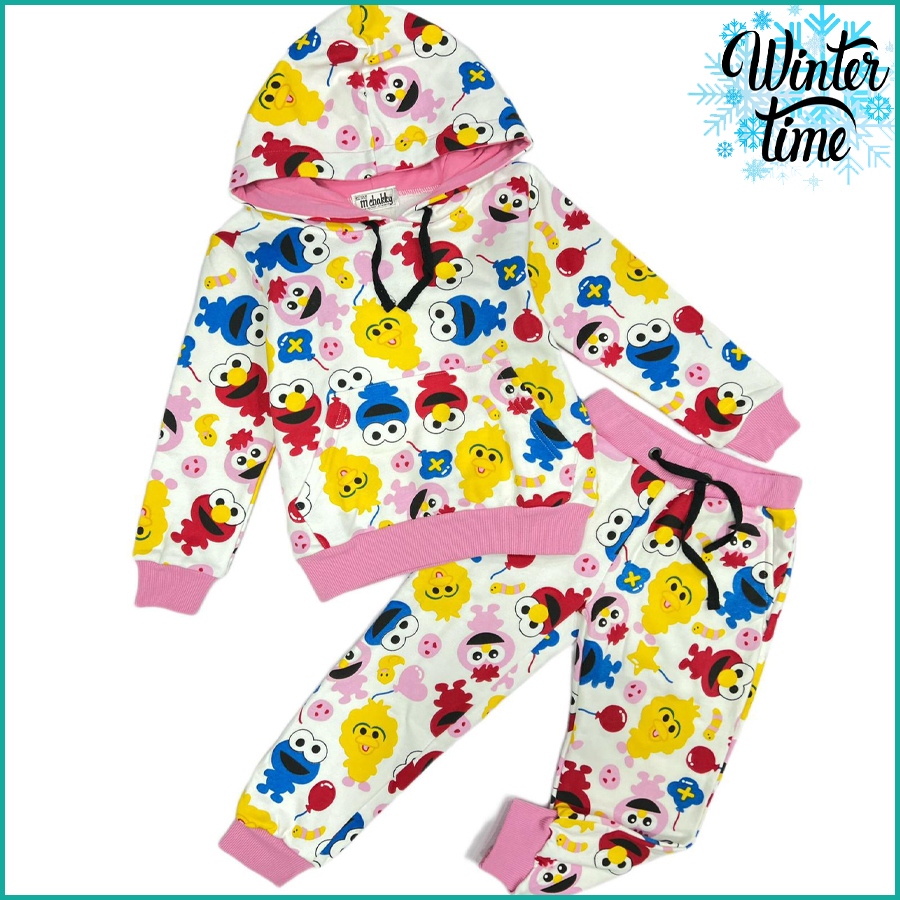 Cute Monsters Girls Training Suit – White