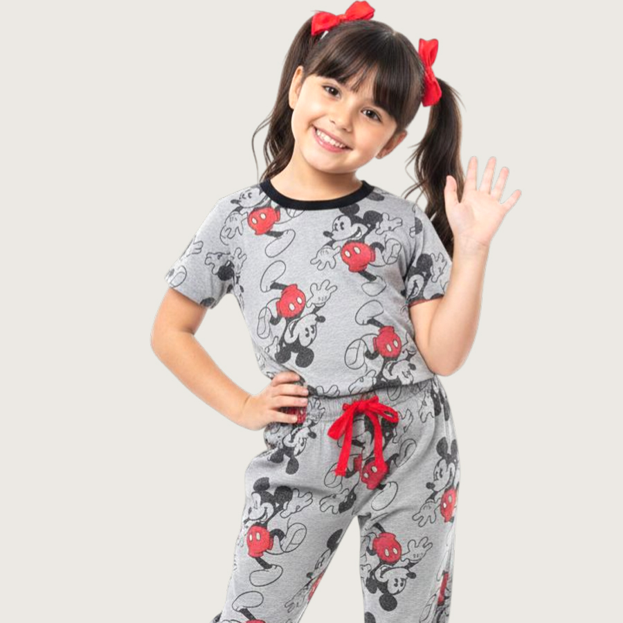Dance Mickey Girls Cotton Half Sleeves Pajama Set – Grey