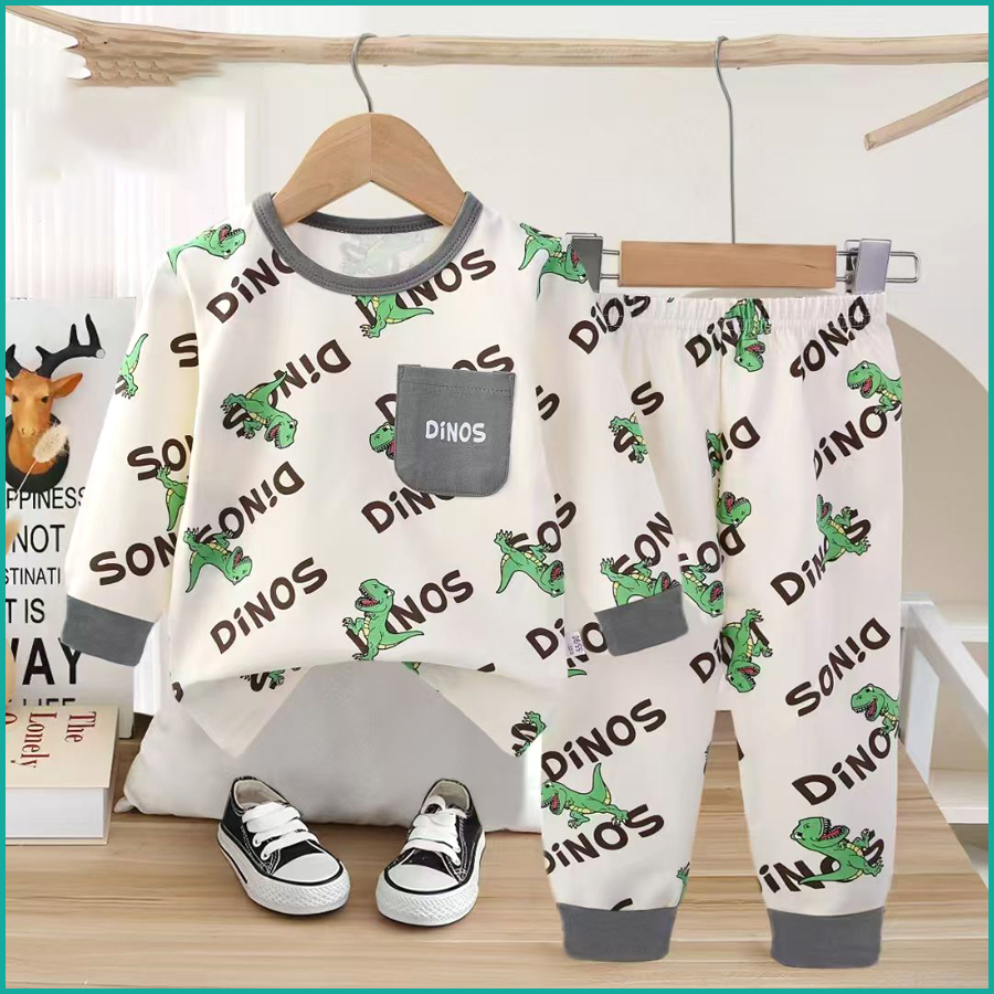 Dinos Boys Full Sleeves Pajama Set Khafif – Cream