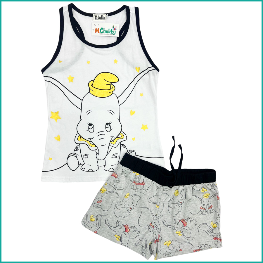 Disney Dumbo Ladies Shorts Set – White Grey