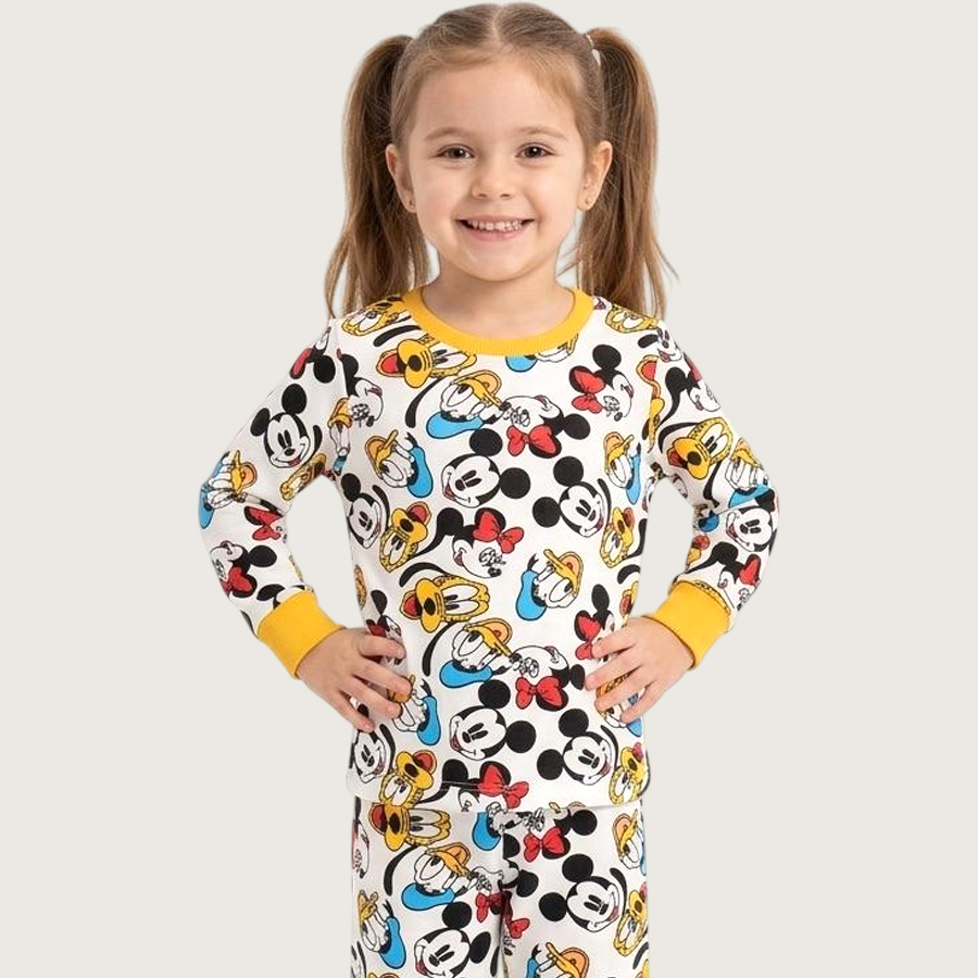 Disney Face Girls Full Sleeves Pajama Set MCHAKKY – White