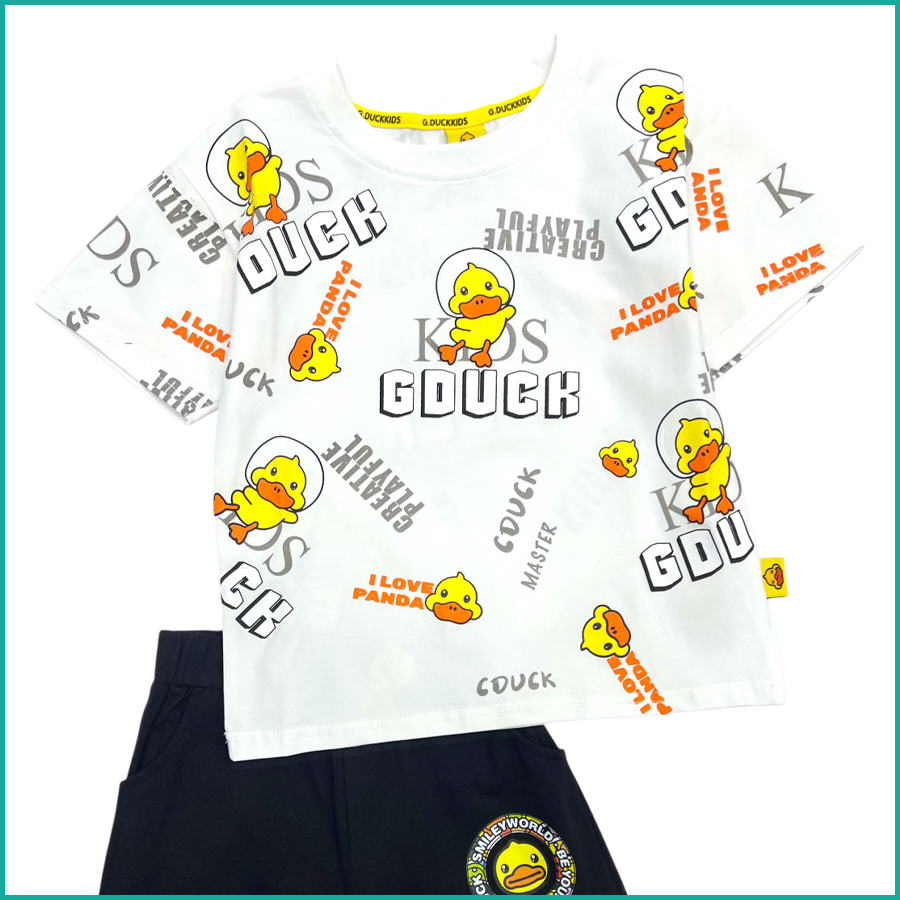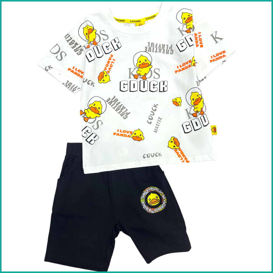 Duck Boys Shorts Set – White Black