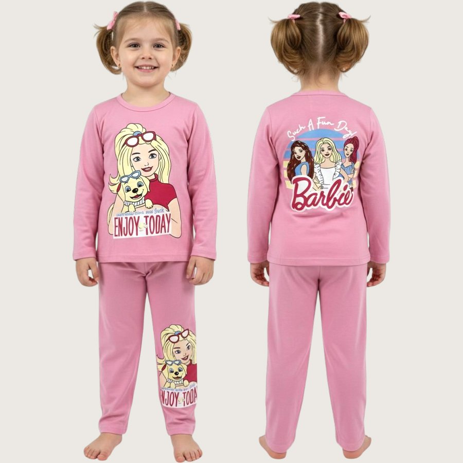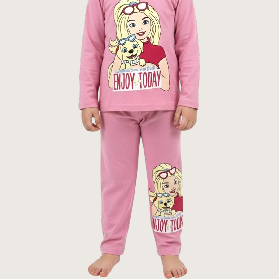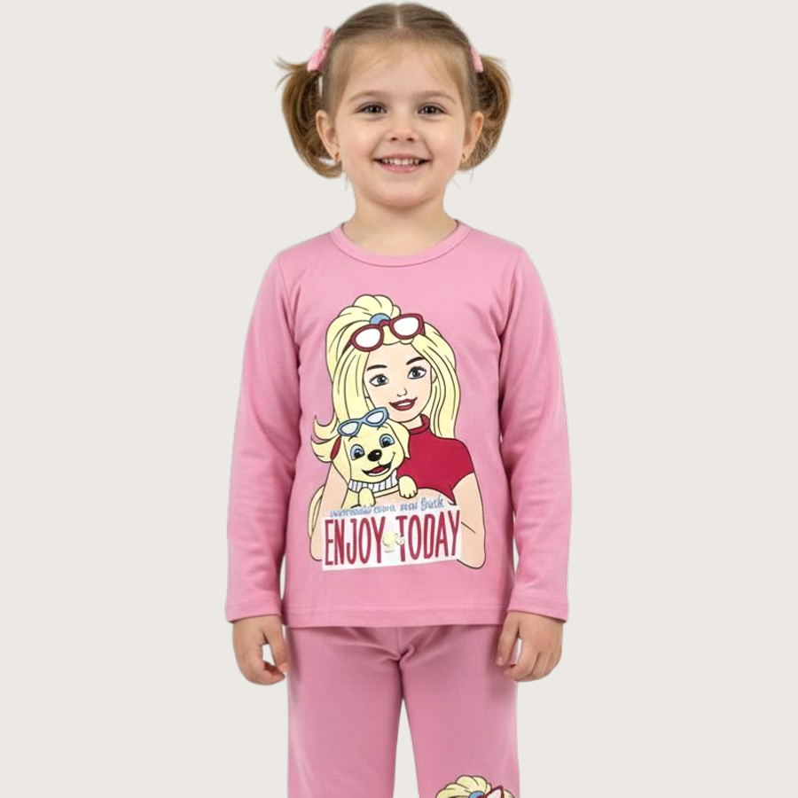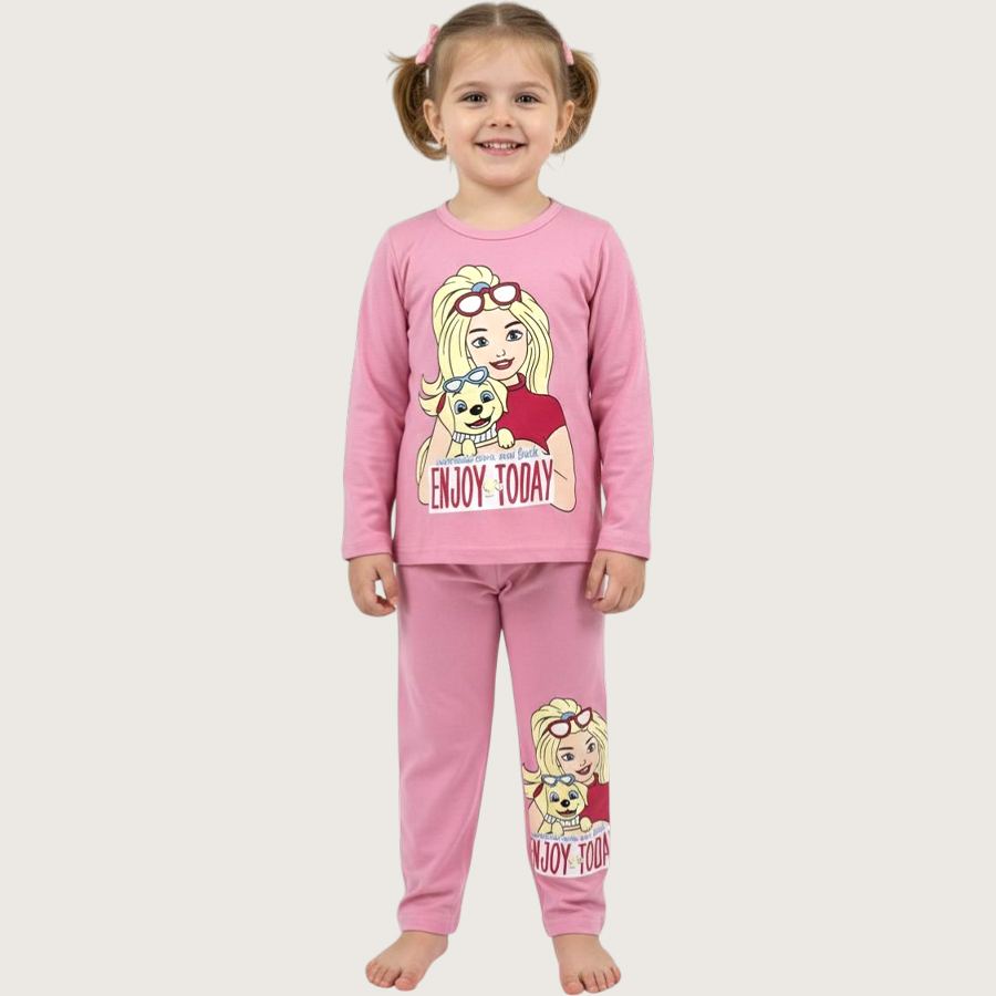 Enjoy Barbie Girls Cotton Pajama Set – Pink