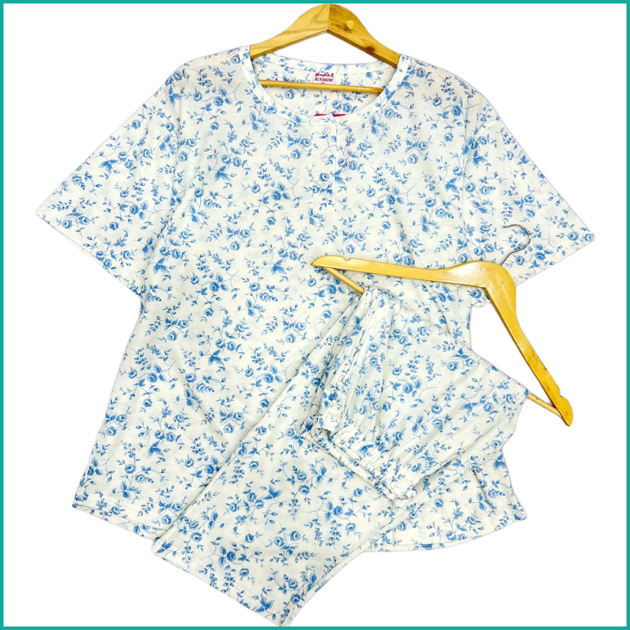 Floral Ladies Cotton Bermuda Set (Jumbo size)- White