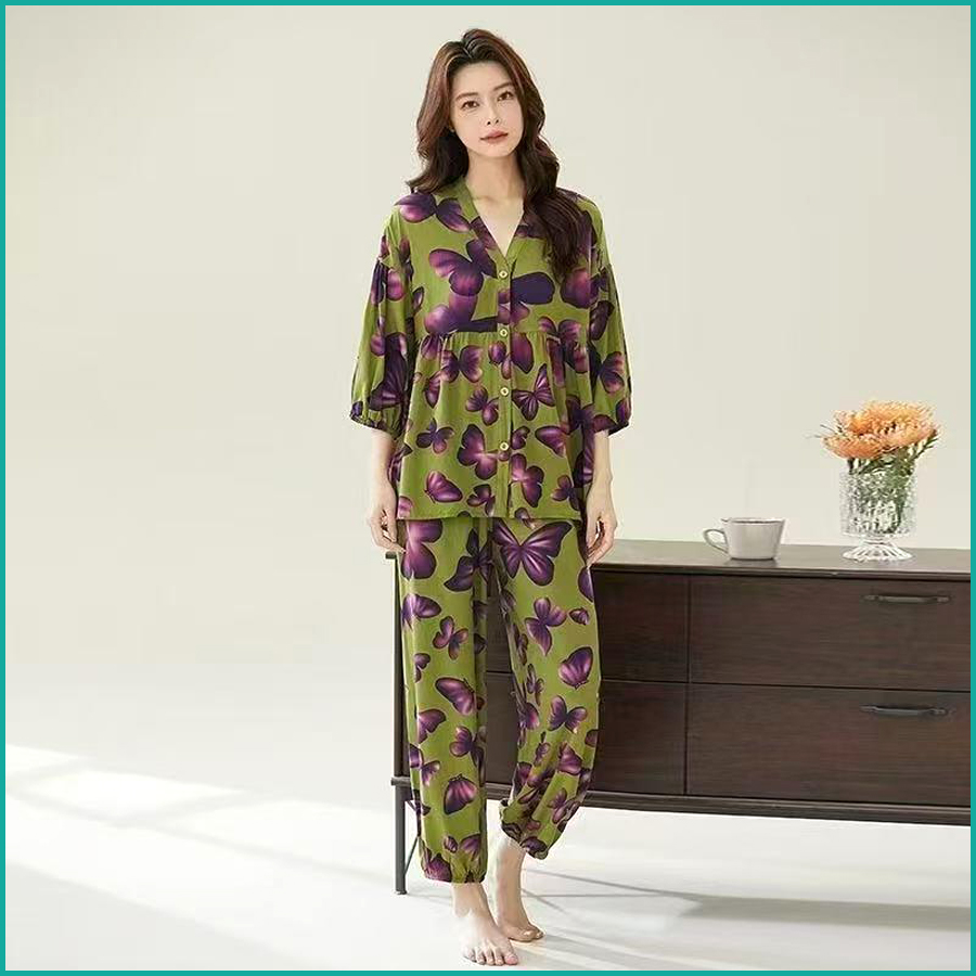 Floral Ladies Full Sleeves Pajama Set Viscos Fine Material – Green
