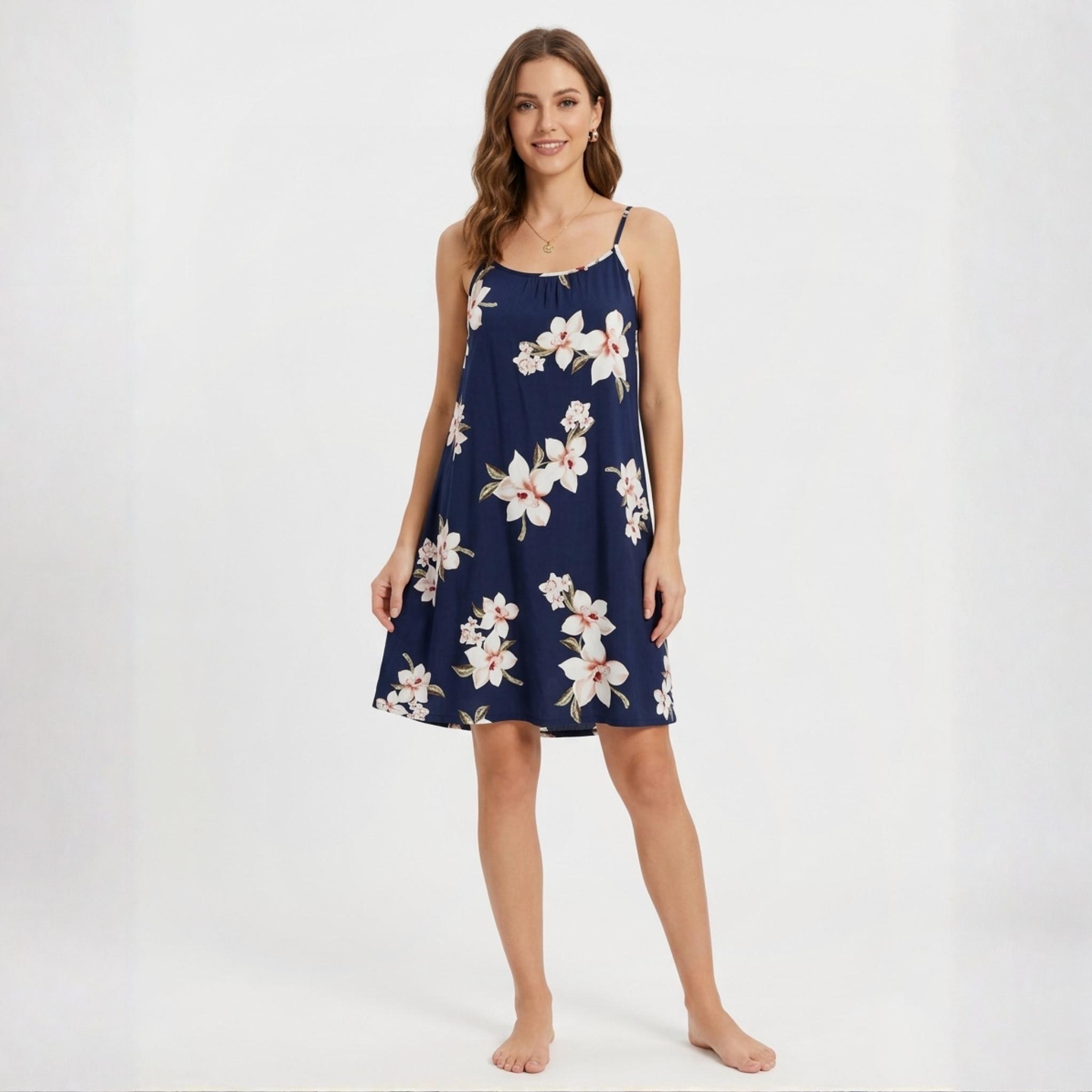 Floral Ladies Halfer Linen Cotton – Navy Blue