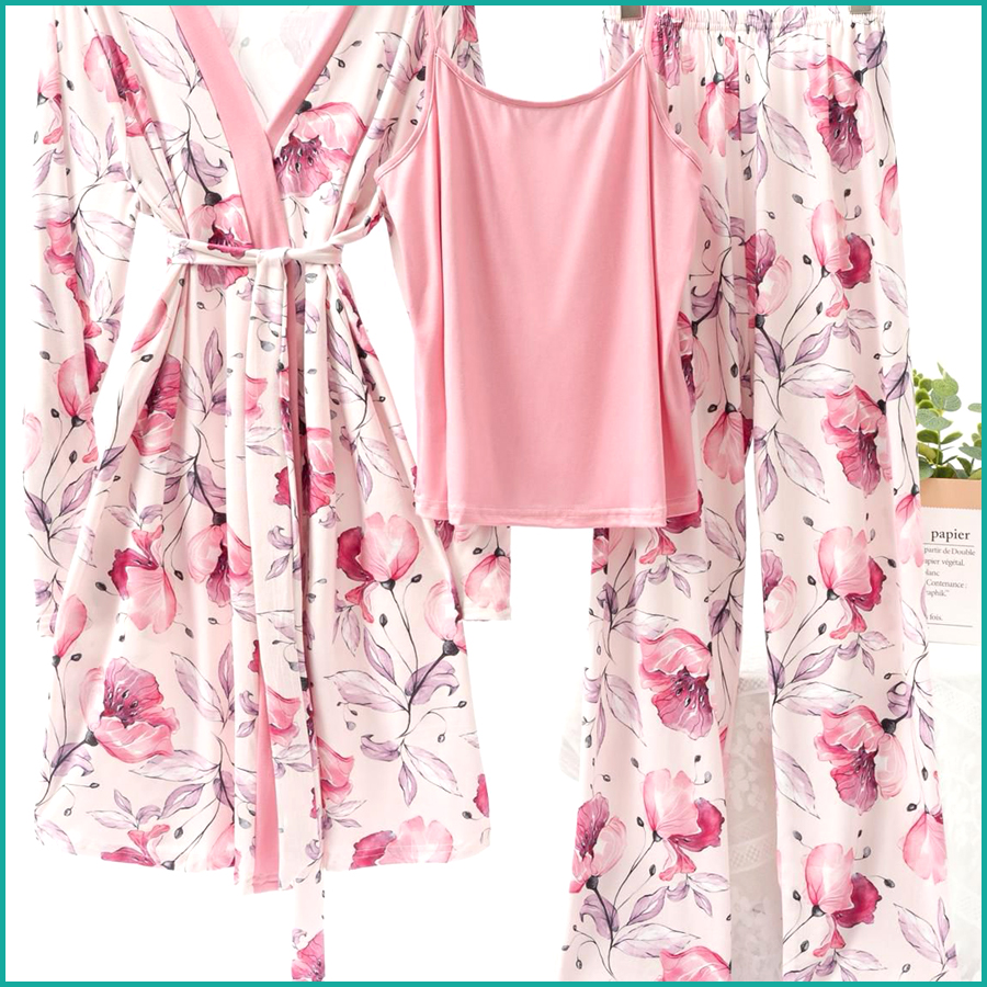 Floral Ladies Loungewear 3 Pcs Set – Baby Pink