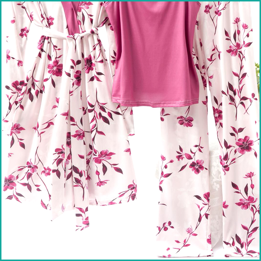 Floral Ladies Loungewear 3 Pcs Set – Hot Pink