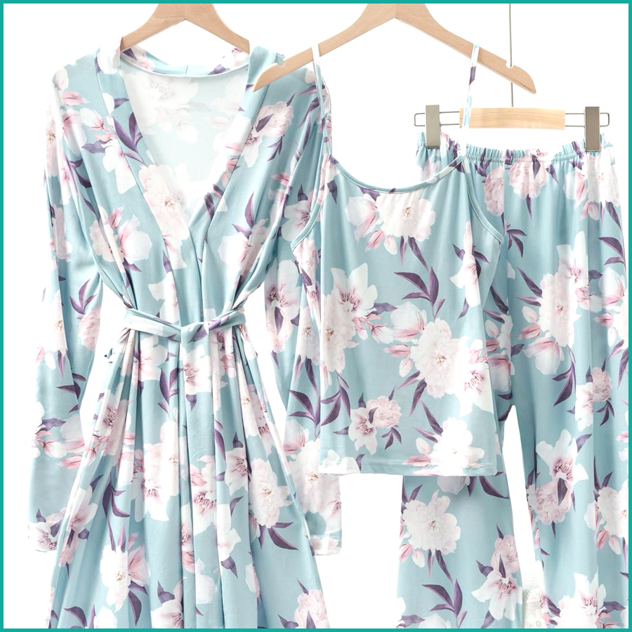 Floral Ladies Loungewear 3 Pcs Set – Sea Blue