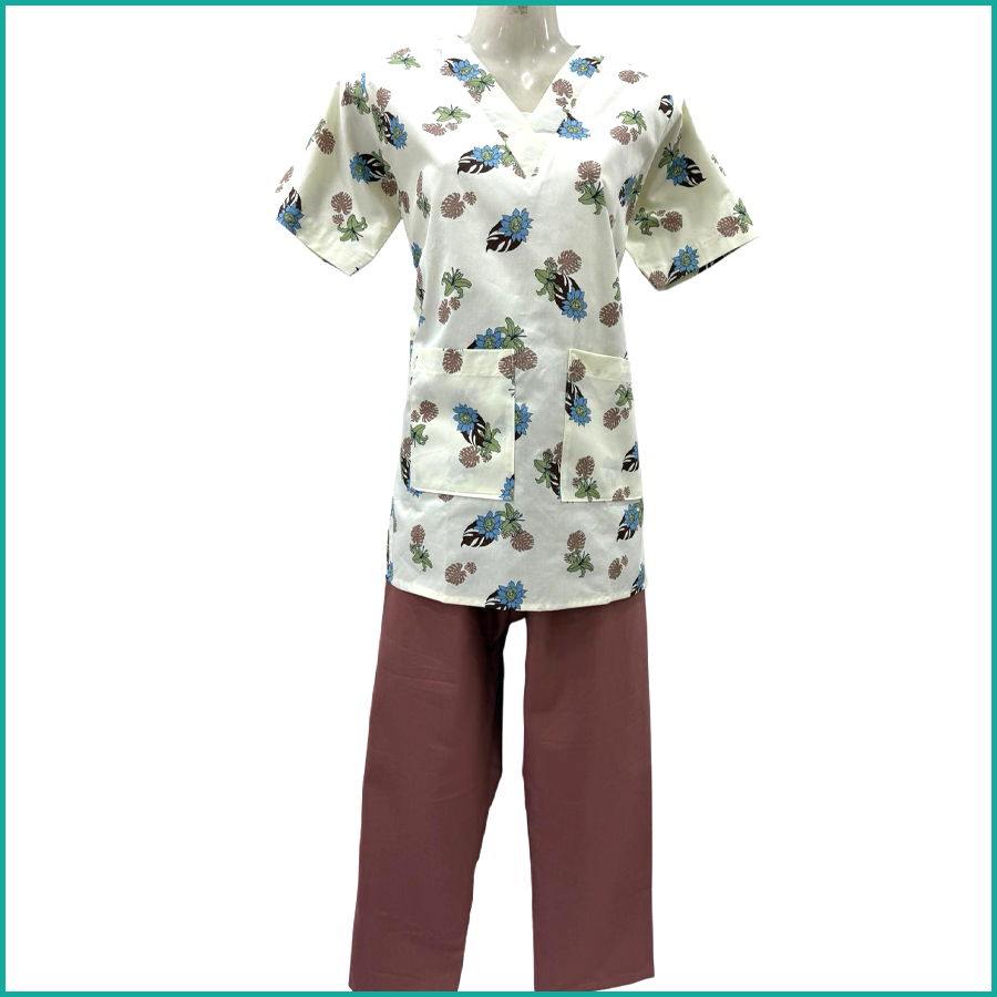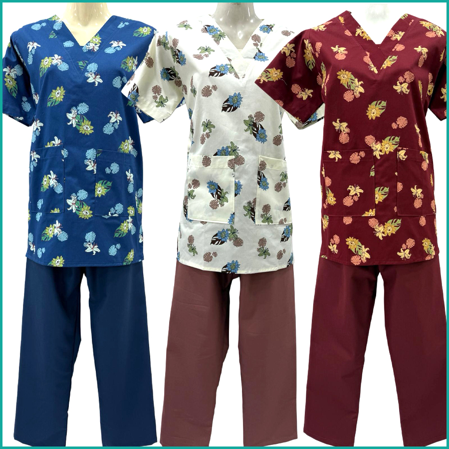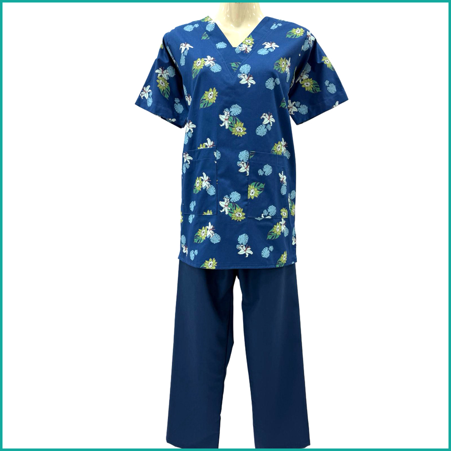 Floral Uniform for Maids Half Sleeves GABARDEN Material – Blue White Red