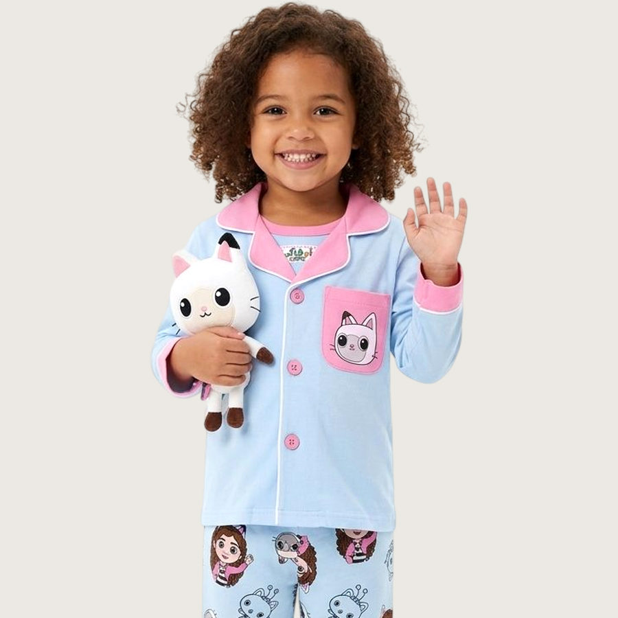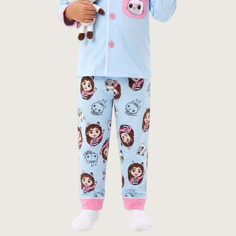 Friends Girls Front Open Full Sleeves Pajama Set – Sky Blue