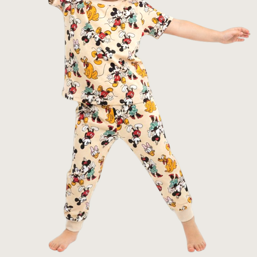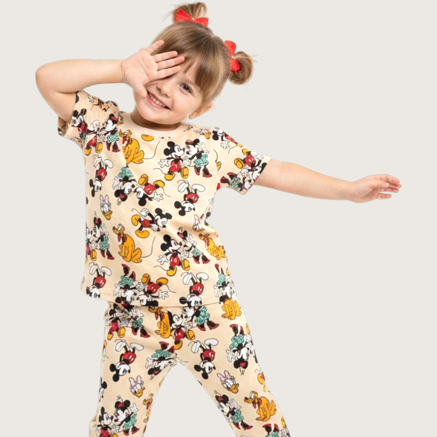 Fun Mickey Girls Cotton Half Sleeves Pajama Set – Yellow