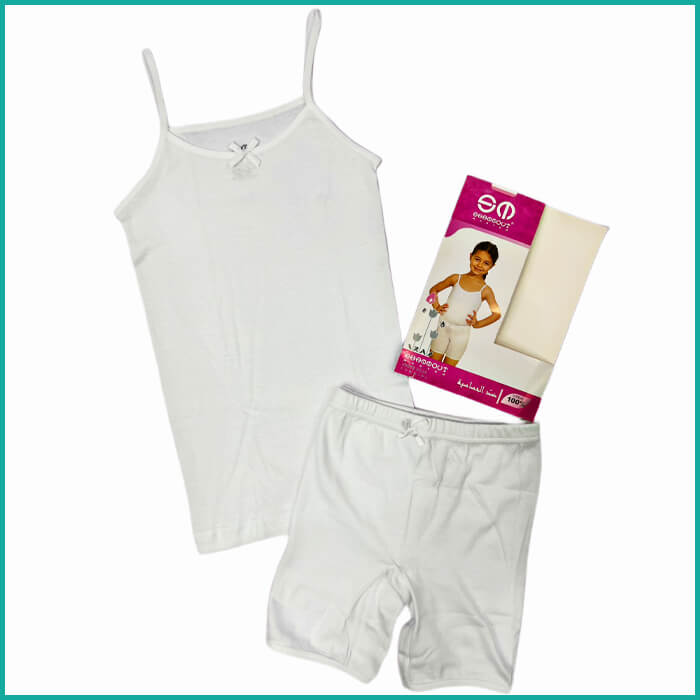 Girls Cut Sleeves Underwear – White