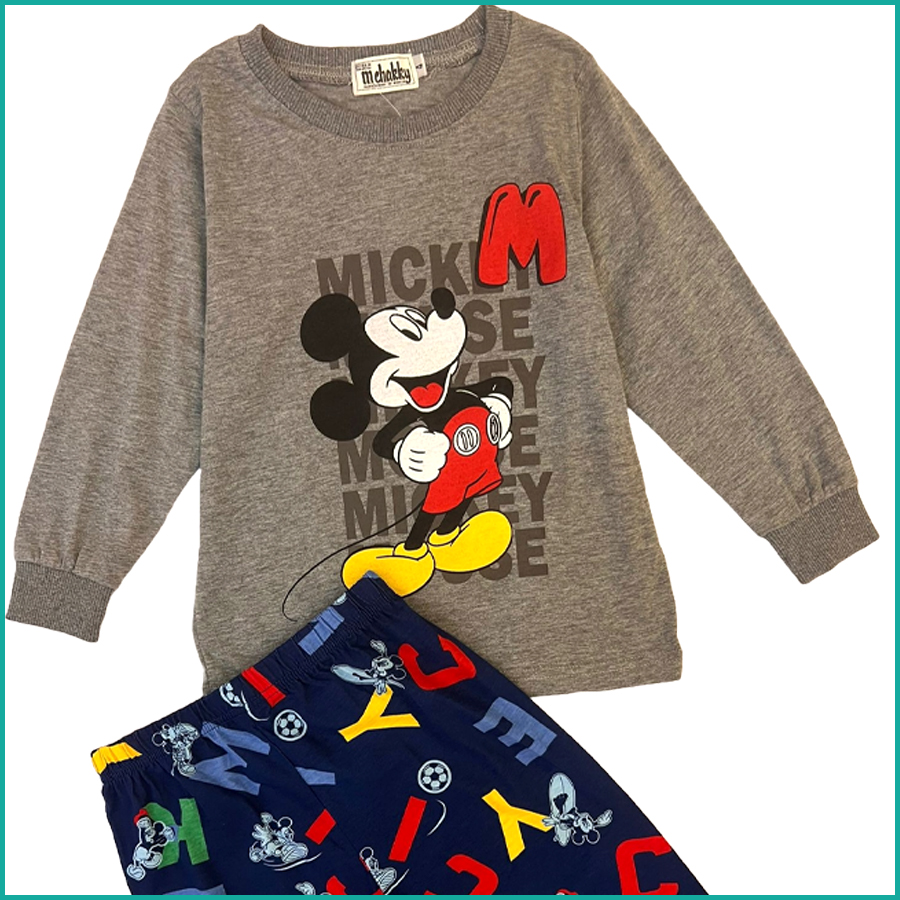 Happy Mickey Boys Cotton Pajama Set – Grey Blue