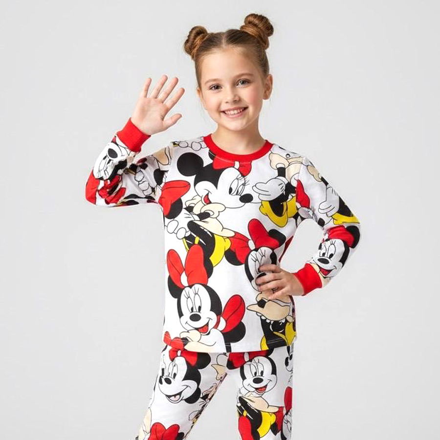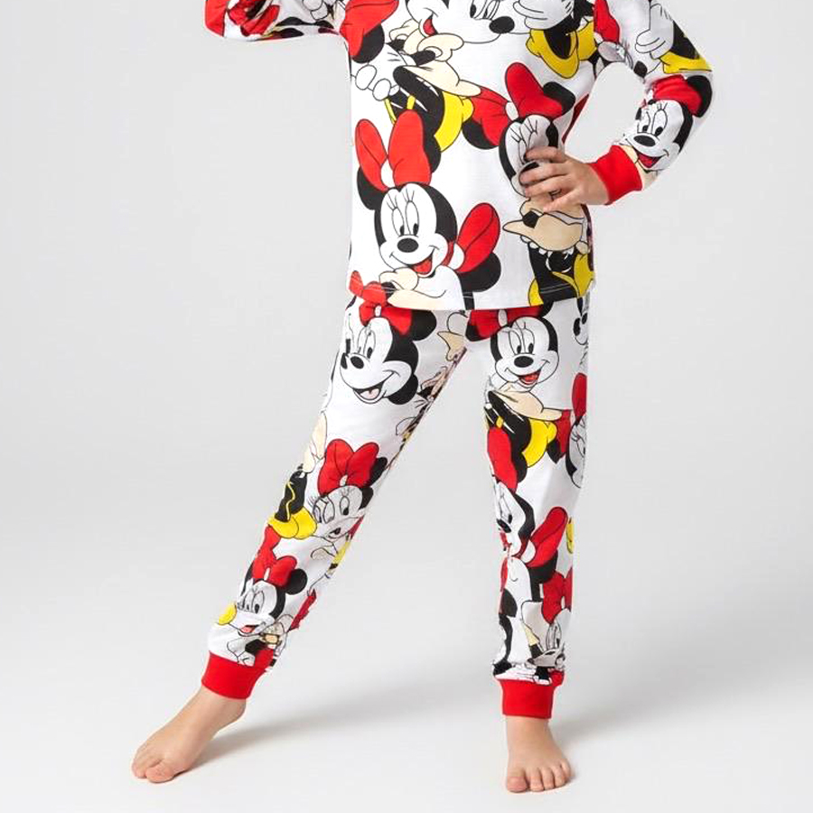 Hello Minnie Girls Full Sleeves Pajama Set – White