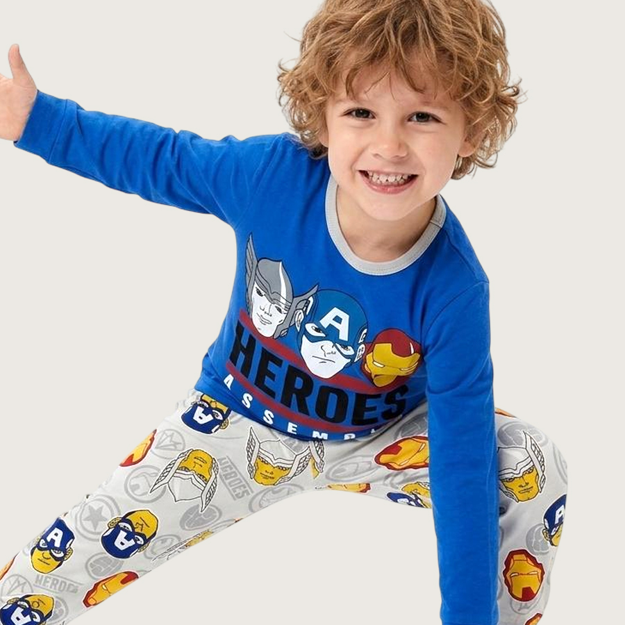 Heroes Boys Full Sleeves Pajama Set KHAFIF – Blue Grey