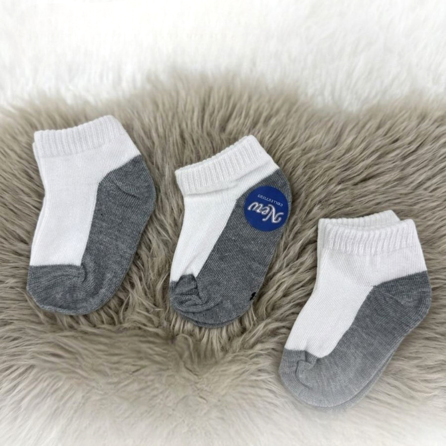 Kids School Socks 3 Pcs Set Ankle Cut – White Grey