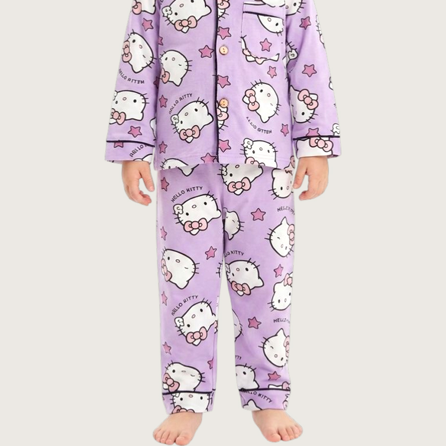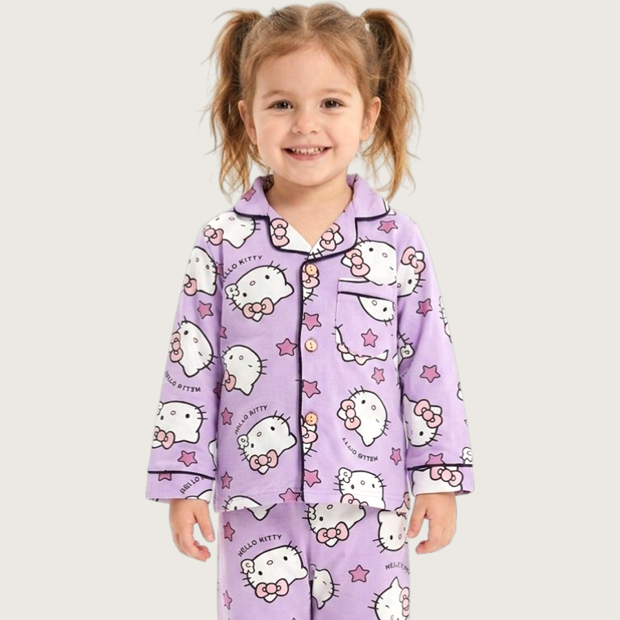 Kitty Girls Cotton Front Open Pajama Set – Purple