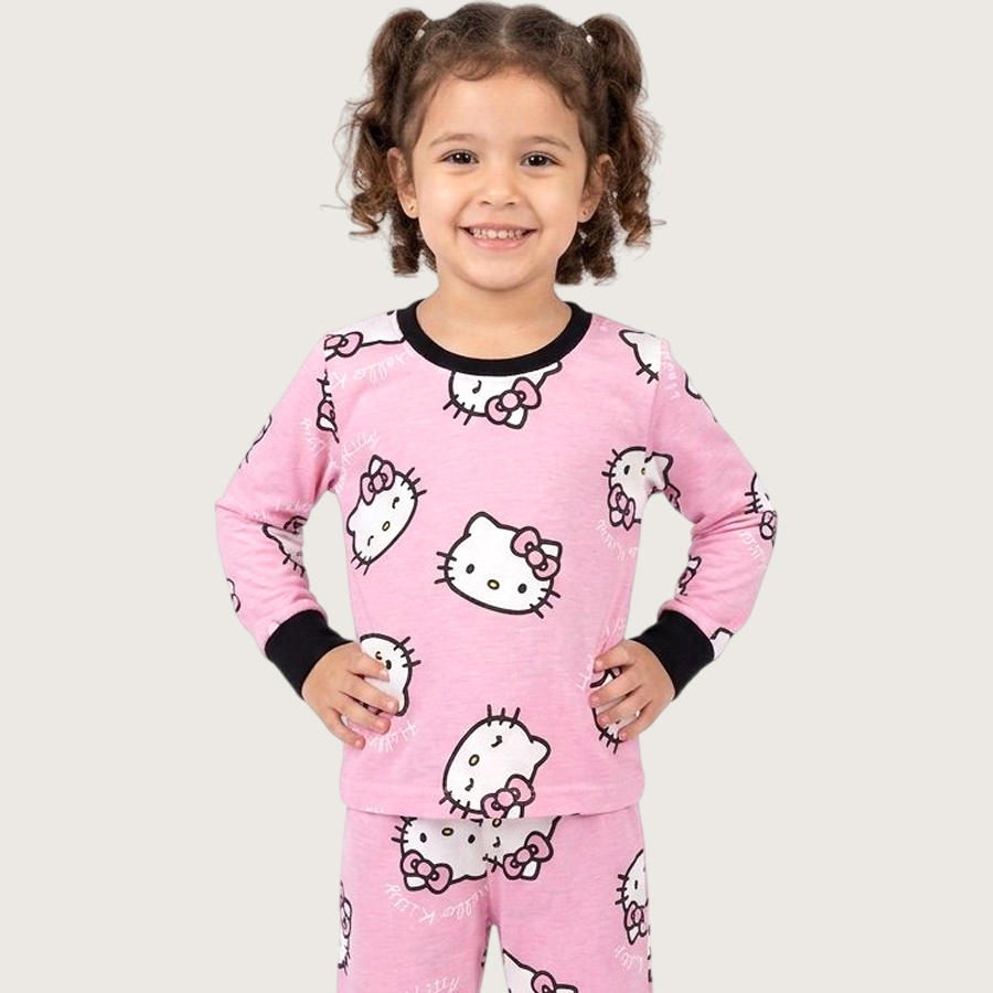 Kitty Hello Girls Cotton Full Sleeves Pajama Set – Pink