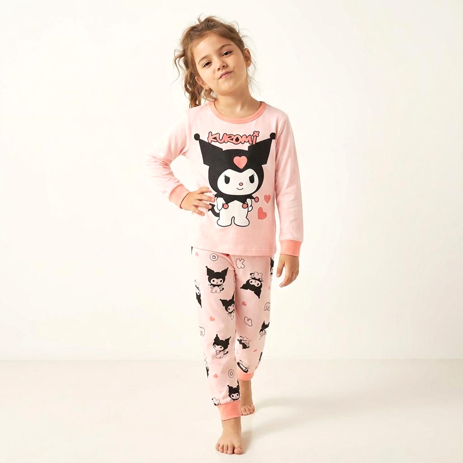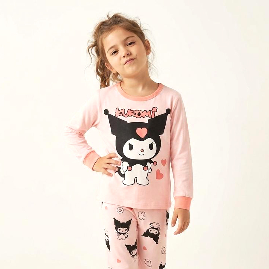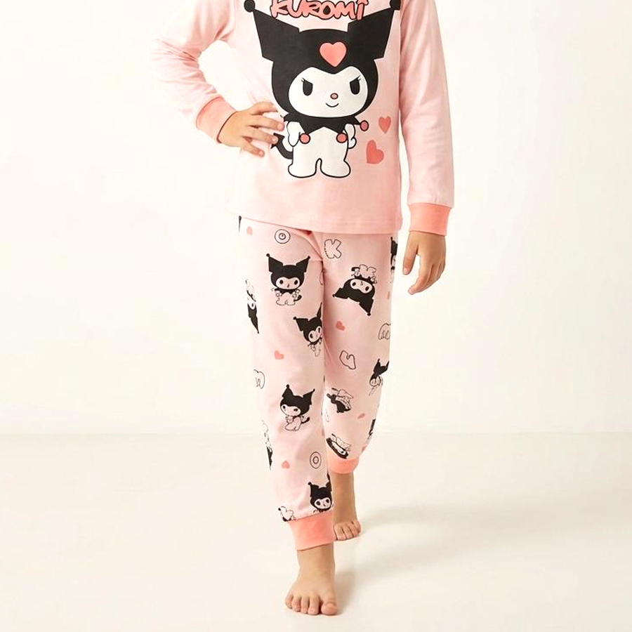 Kuromi Love Girls Full Sleeves Cotton Pajama Set – Pink
