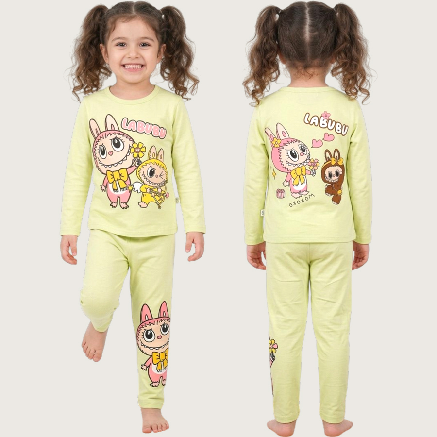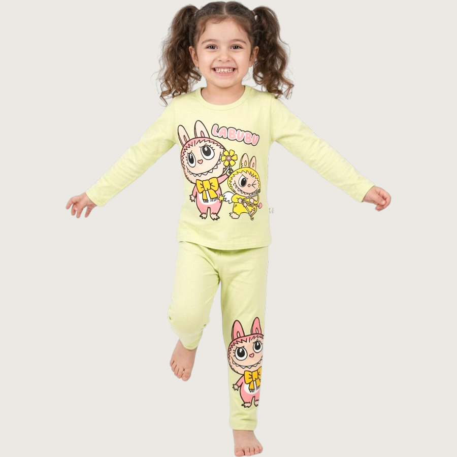 Labubu Girls Cotton Pajama Set – Neon