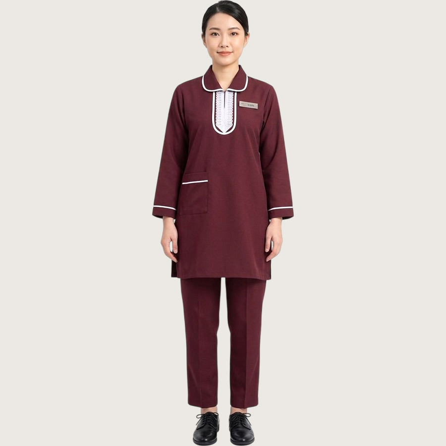 Designed for comfort and professionalism, this maid’s uniform is crafted to meet the needs of daily tasks.
