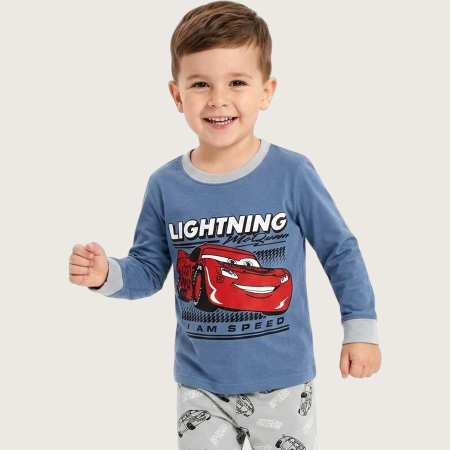 Lightning McQueen Boys Full Sleeves Pajama Set KHAFIF – Blue Grey