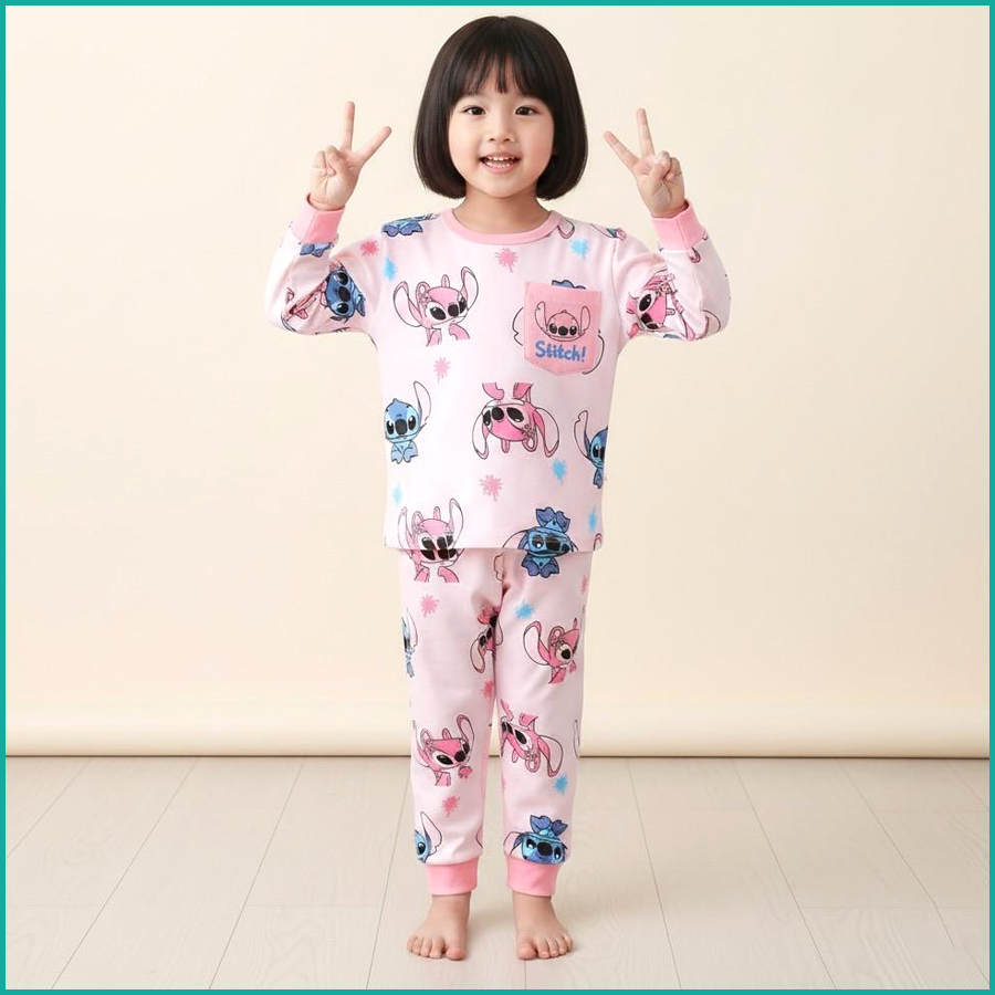 Lilo Stitch Girls Full Sleeves Pajama Set Khafif – Pink