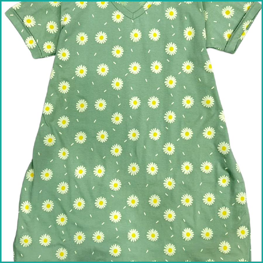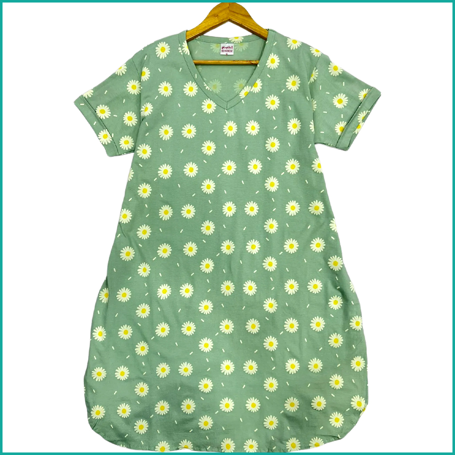 Mickey Ladies Front Open Cotton Dress - Multicolor
