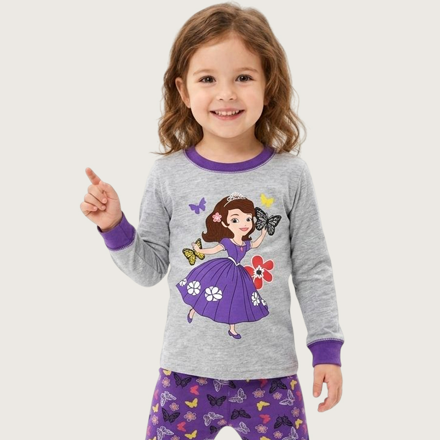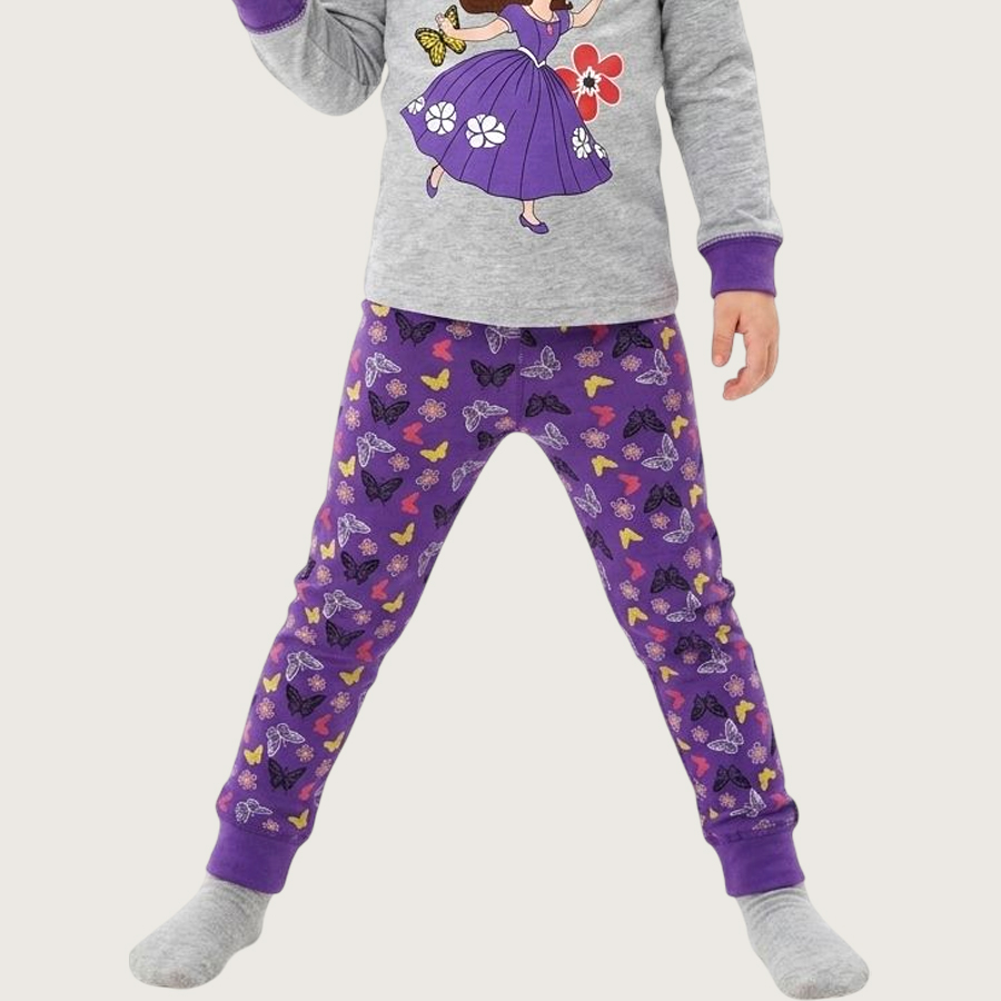 Little Princess Girls Full Sleeves Pajama Set KHAFIF – Purple Grey
