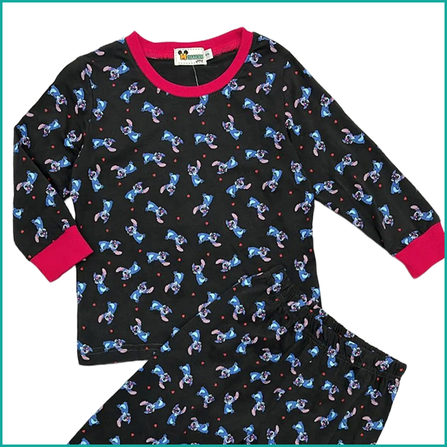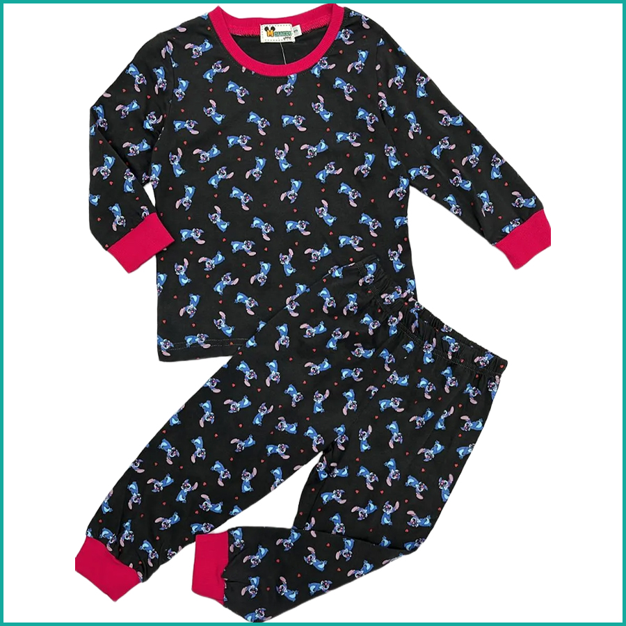 Little Stitch Girls Full Sleeves Pajama Set – Black