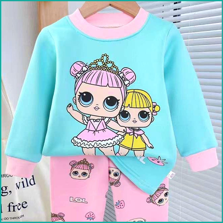 LOL Kids Winter Pajama Set – Blue Pinkبجايم مبتن من داخل