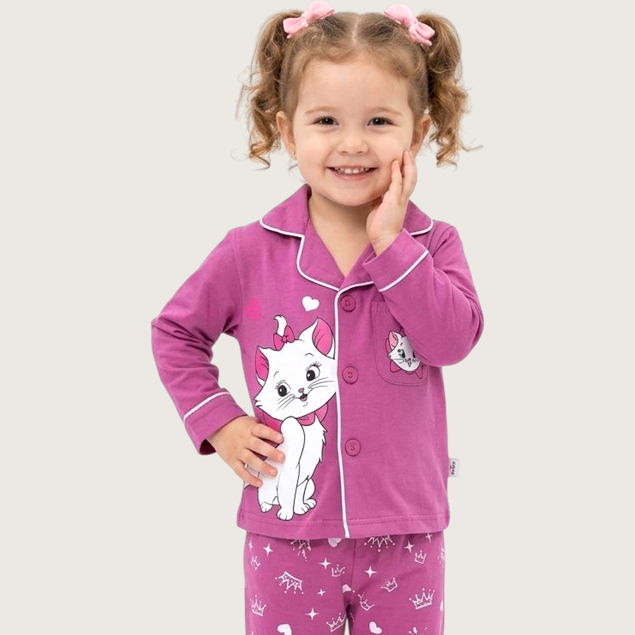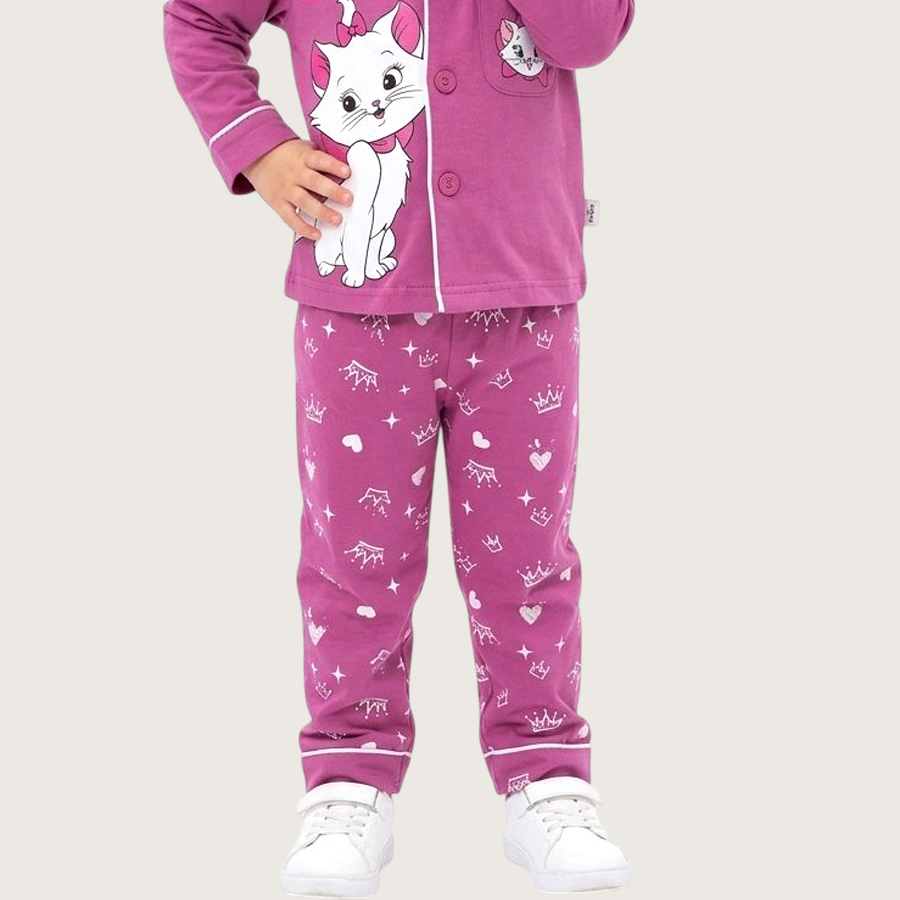 Marie Girls Front Open Full Sleeves Pajama Set – Purple
